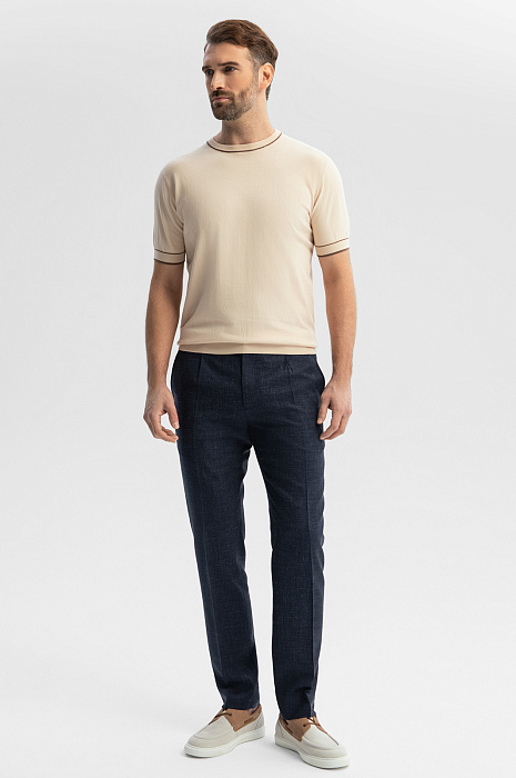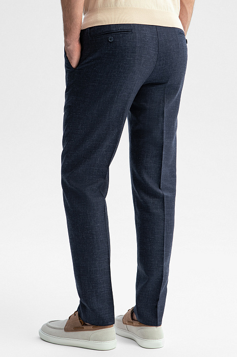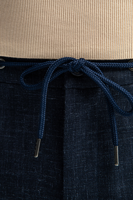 Брюки из шерсти, льна и шелка, цвет синий, цена 9 990 руб., код 268976 - купить в Краснодаре в интернет-магазине KANZLER