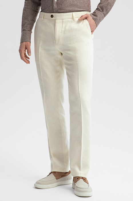 Брюки изо льна и тенсела, цвет белый, цена 12 990 руб., код 269083 - купить в Краснодаре в интернет-магазине KANZLER