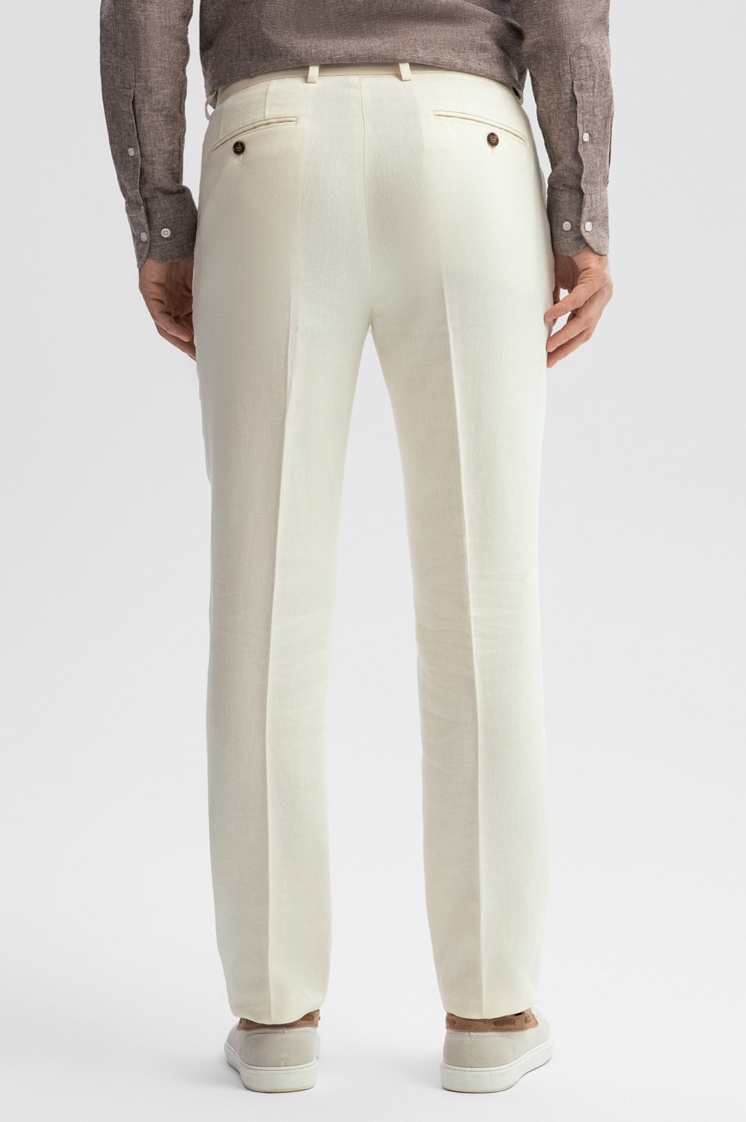 Роскошные белые брюки KANZLER со стрелками изо льна и тенсела созданы для гедонистов, которые умеют наслаждаться жизнью и производить впечатление на окружающих. Изысканный пошив, слегка зауженный изящный силуэт, классический крой и дорогая натуральная ткань создают идеальный баланс между шиком и комфортом. Легкие стрелки создают вертикальные линии, визуально удлиняющие ноги. Натуральная дышащая гипоаллергенная ткань сочетает достоинства льна и тенсела. Гладкие воздухопроницаемые волокна льна обладают способностью охлаждать тело. Нити тенсела, созданные из природного материала (целлюлозы), отлично отводят влагу, сохраняя ощущение свежести. Параметры модели: рост 189, 102-80-99 Размер на модели: 50