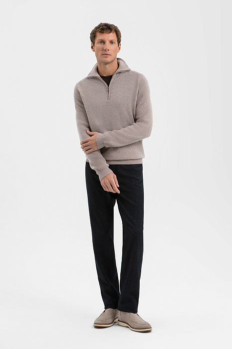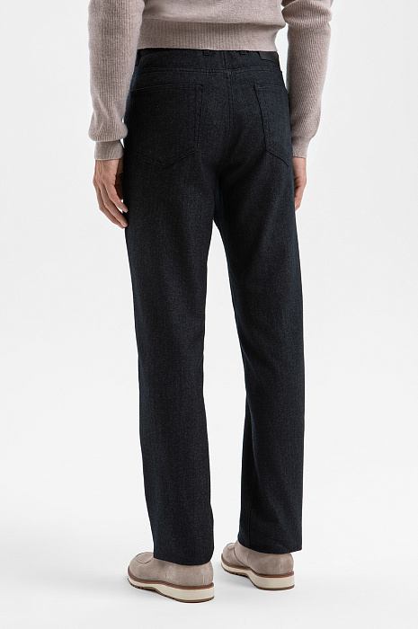 Чёрные брюки KANZLER из лимитированной коллекции с традиционным джинсовым кроем преобразует повседневную эстетику в более элегантный и непринуждённый вариант городской одежды, который легко вписывается в деловой гардероб и современные неформальные образы. Силуэт подходит для любого типа фигуры, обеспечивая комфорт, свободу движений и ощущение уверенности. Саржевое плетение придаёт цвету глубину и насыщенность, а ткани — прочность и долговечность. Натуральный воздухопроницаемый материал — бленд хлопка и шерсти — поддерживает свежесть и сохраняет естественное тепло тела. Параметры модели: рост 188, 97-82-92 Размер на модели: 50