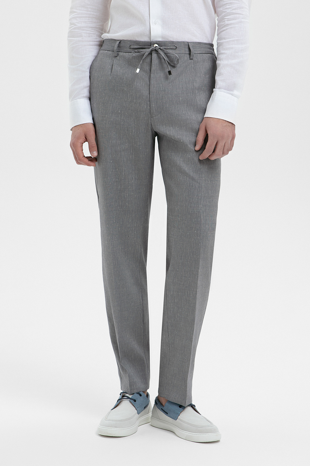 Брюки из шерсти, льна и шелка, цвет серый, цена 17 990 руб., код 271038 - купить в Краснодаре в интернет-магазине KANZLER