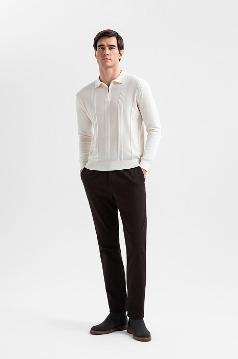 Повседневные брюки KANZLER из хлопка глубокого коричневого оттенка — идеальный вариант для города. В сочетании с рубашкой они выглядят формально, с мягким вязаным трикотажем — расслабленно и роскошно. Универсальный для любой комплекции прямой крой визуально вытягивает силуэт. Аккуратные боковые карманы не нарушают лаконичного дизайна. Тактильно приятная ткань создана из гипоаллергенного хлопка, который помогает поддерживать комфорт. Небольшая добавка лайкры делает материал пластичным, обеспечивает идеальную посадку и комфорт при движении.