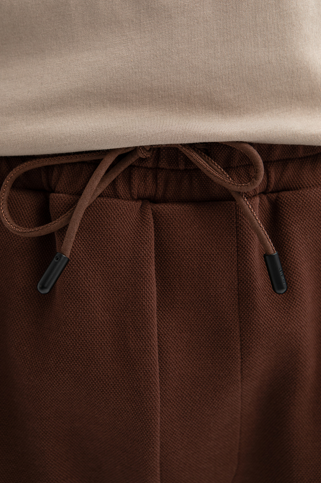 Спортивные коричневые брюки KANZLER на кулиске из хлопкового трикотажа в минималистичном стиле — стильная основа для спортивных и расслабленных городских образов. Вертикальные строчки спереди визуально вытягивают фигуру. Деликатными акцентами служат петелька на заднем кармане и наконечники на шнурке. Объем талии можно регулировать шнурком, задавая комфортную посадку. Ткань создана из мягкого дышащего гипоаллергенного хлопка (78%). Добавление полиэстера и спандекса придает материалу прочность, эластичность и устойчивость к сминанию. Параметры модели: рост 188, 97-82-92 Размер на модели: M