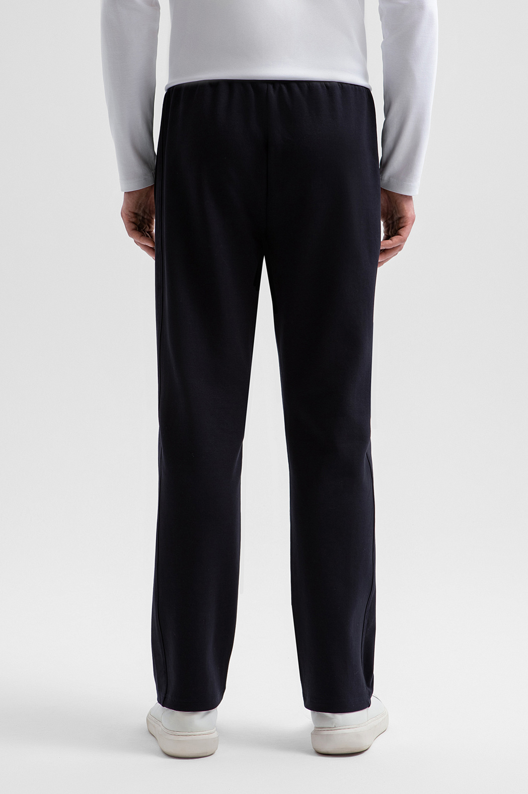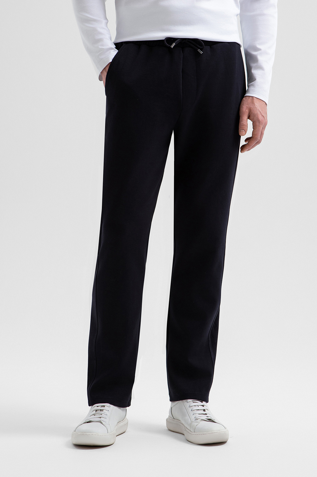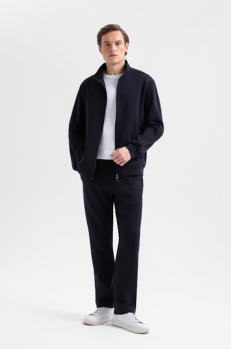 Тёмно-синие брюки KANZLER кулиске из смесового хлопка обеспечивают комфорт на отдыхе, будь то спортивные занятия или расслабленный уик-энд дома. Для создания костюма их можно дополнить толстовкой KANZLER на молнии из такой же ткани. Шнурок на поясе позволяет легко подстроить посадку под себя. Основная часть из трикотажа сочетается с широкими лампасами из полиэстера со спандексом, которые придают образу динамику и современный характер. Трикотаж сделан из гипоаллергенного хлопка, который поддерживает ощущение свежести и сохраняет естественное тепло тела. Добавление полиэстера и эластана повышает износоустойчивость ткани и помогает ей адаптироваться к особенностям фигуры.