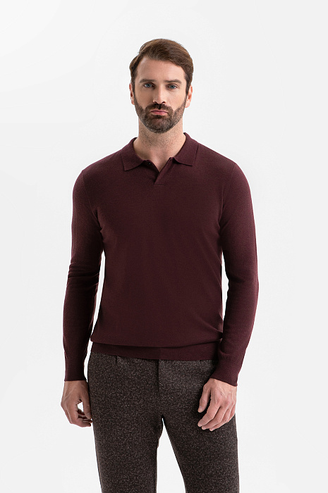 Джемпер поло из шерсти и кашемира, цвет бордовый, цена 7 990 руб., код 270040 - купить в Краснодаре в интернет-магазине KANZLER