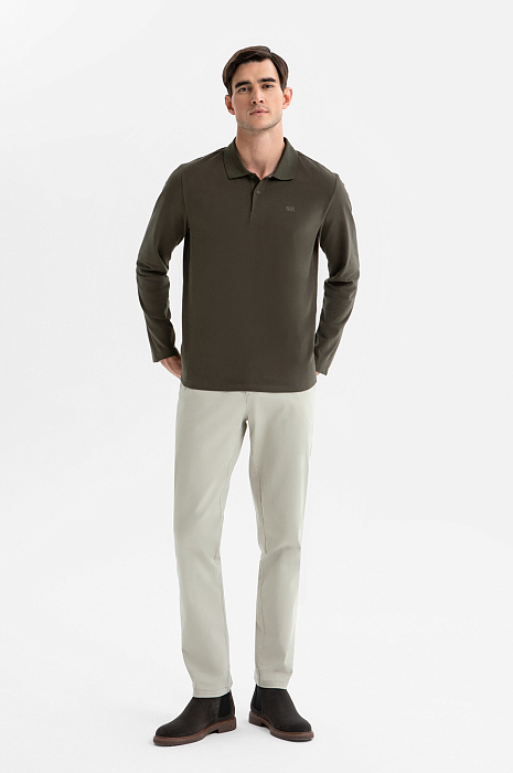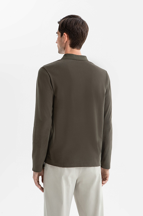 Поло KANZLER с длинным рукавом глубокого коричнево-зелёного оттенка из 100-процентного хлопка — базовый элемент гардероба современного мужчины, для которого важны благородство и сдержанность в образе, воплощённые в высоком качестве, классическом крое и натуральном цвете. Универсальная модель органично смотрится в повседневных и спортивных образах. Небольшой логотип на груди, выполненный в тон, служит акцентом, добавляя индивидуальности. Трикотажные резинки на манжетах и по низу формируют аккуратный силуэт и гарантируют комфорт при движении. Мягкий гладкий трикотаж сделан из чистого гипоаллергенного хлопка, который приятен к телу, поддерживает оптимальный микроклимат и хорошо сохраняет форму. Параметры модели: рост 192, 101-76-97 Размер на модели: M