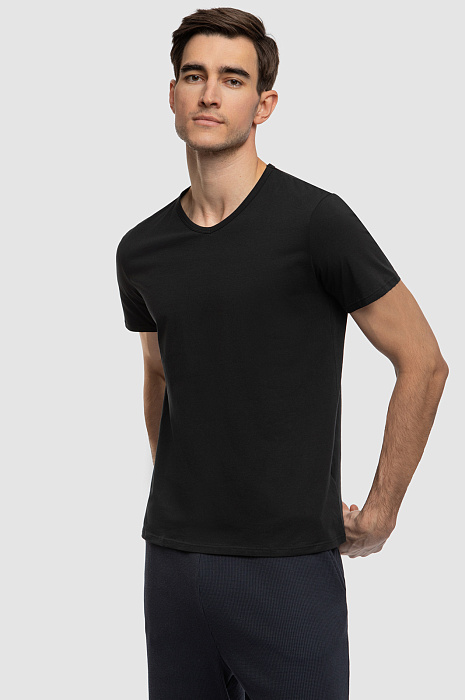 Нательная футболка KANZLER черного цвета — базовая модель прямого кроя для комфорта ваших образов. Футболка с круглым вырезом подходит для любого типа фигуры, а гипоаллергенный материал из натурального бамбука подходит для постоянной носки даже для чувствительной кожи. Натуральный экологически чистый материал, легкий и нежный, пропускает воздух и обладает антибактериальными и дезодорирующими свойствами. Футболка выступает как нижнее белье и подходит для носки под футболки и рубашки из плотных тканей. Такое дополнение образа позволяет немного скорректировать фигуру, визуально спрятав определенные несовершенства. Параметры модели: рост 192, 101-76-97 Размер на модели: M