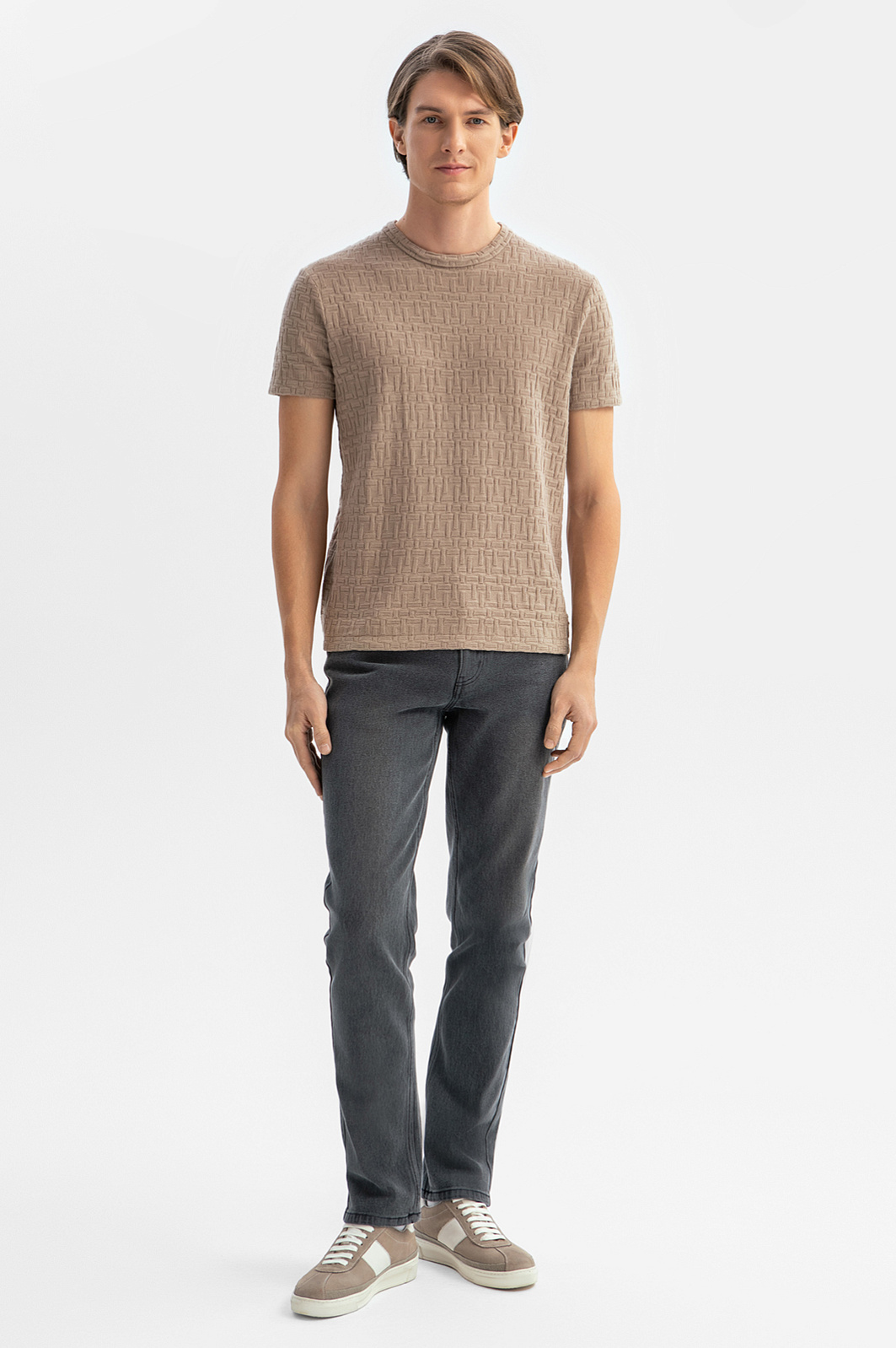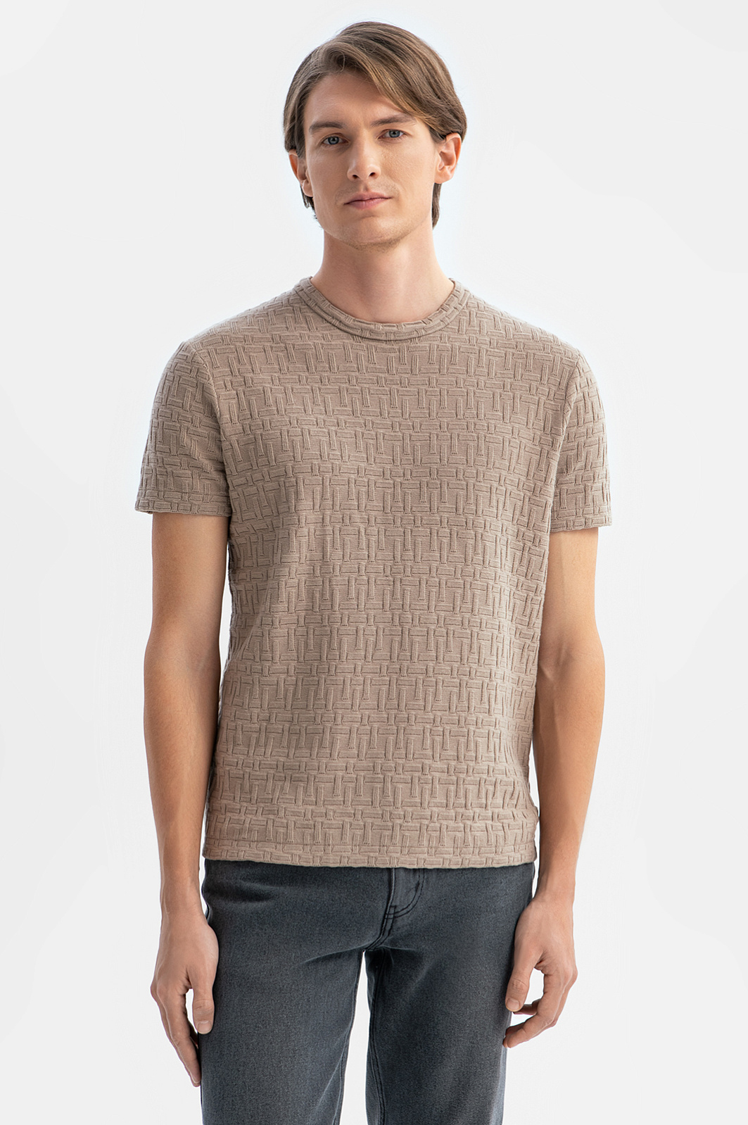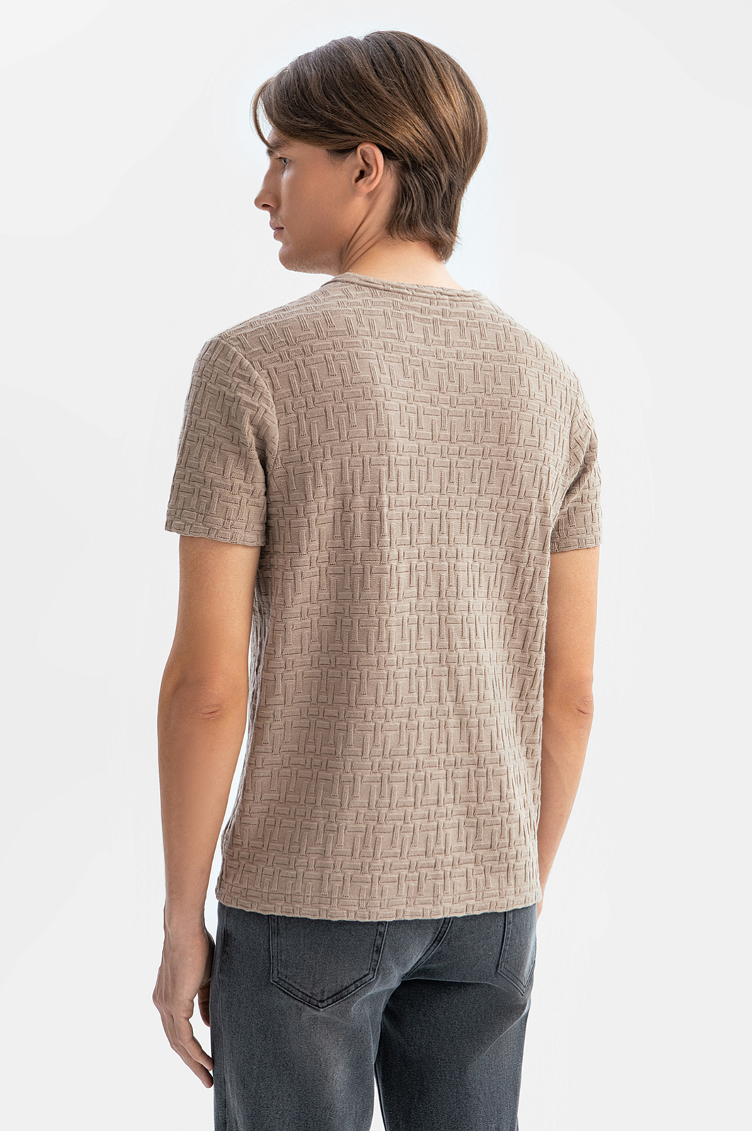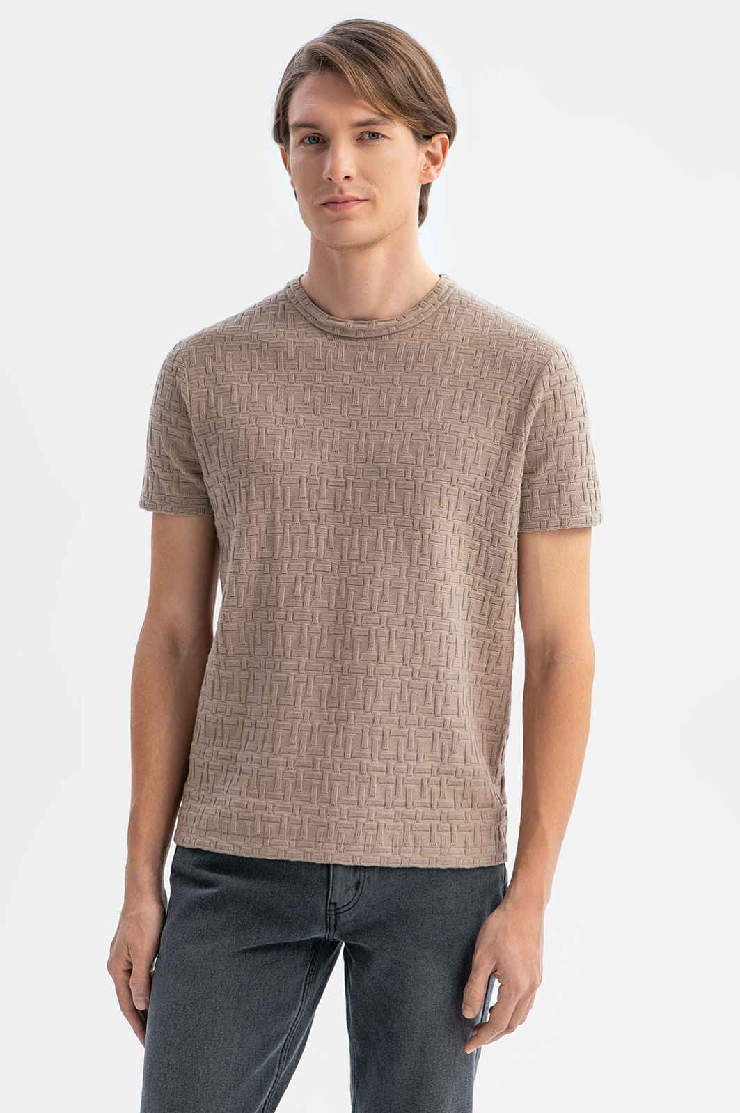 Футболка из хлопка с фактурным узором, цвет коричневый, цена 4 990 руб., код 269170 - купить в Краснодаре в интернет-магазине KANZLER