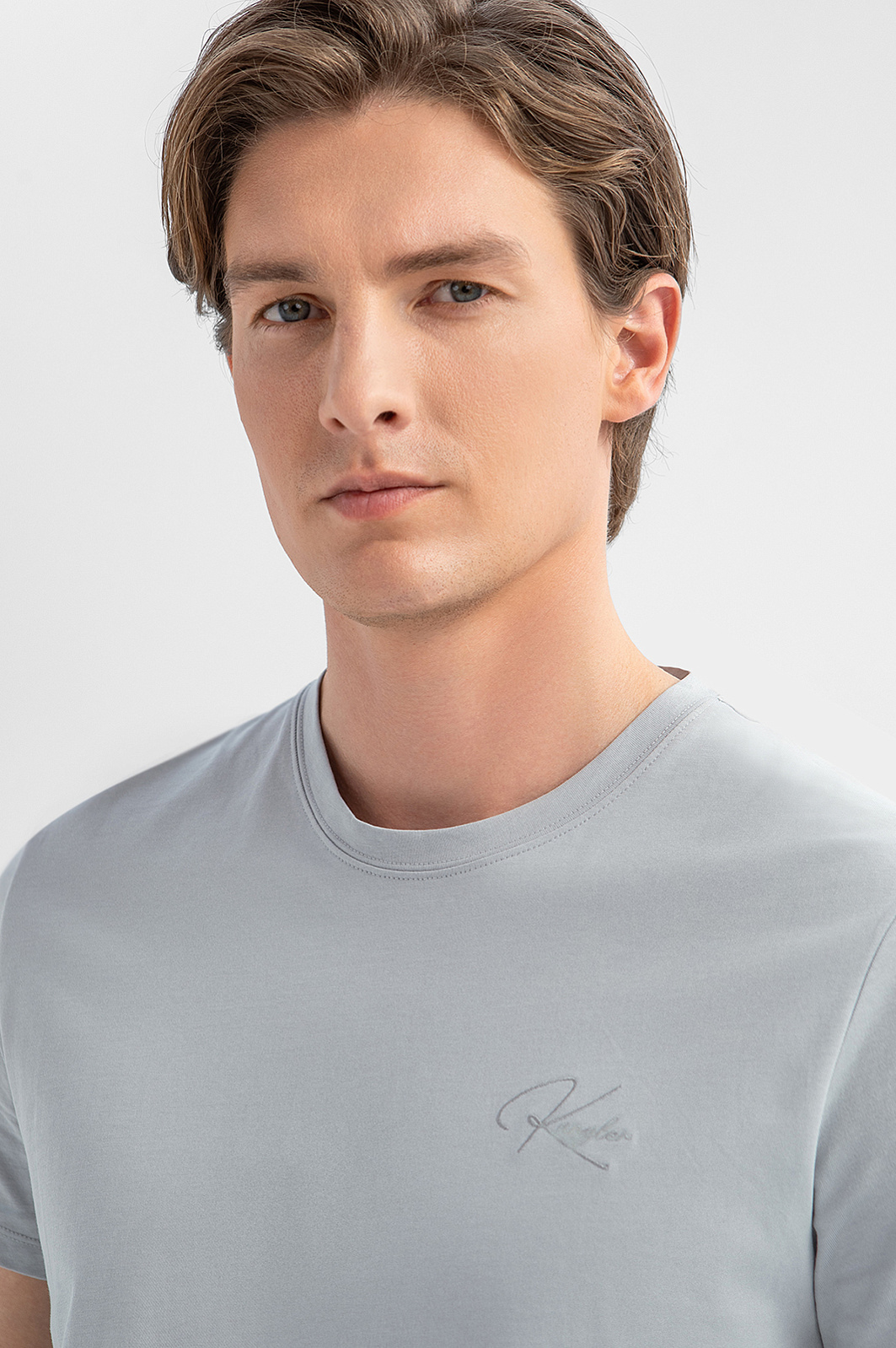 Футболка из хлопка, цвет серый, цена 2 990 руб., код 270207 - купить в Краснодаре в интернет-магазине KANZLER