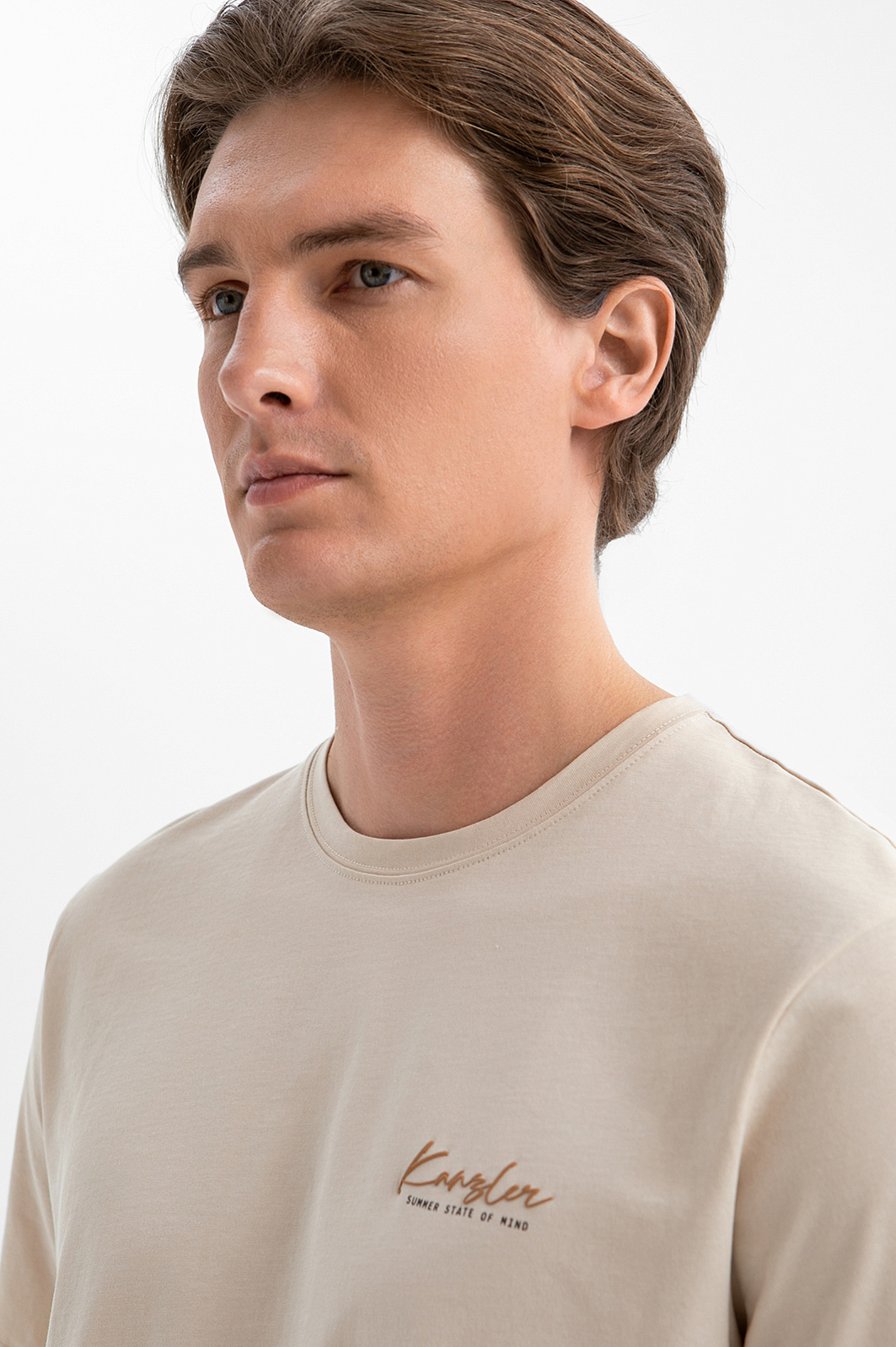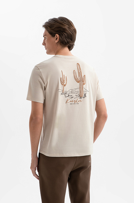 Футболка из хлопка с принтом на спине, цвет бежевый, цена 4 990 руб. - купить в интернет-магазине KANZLER