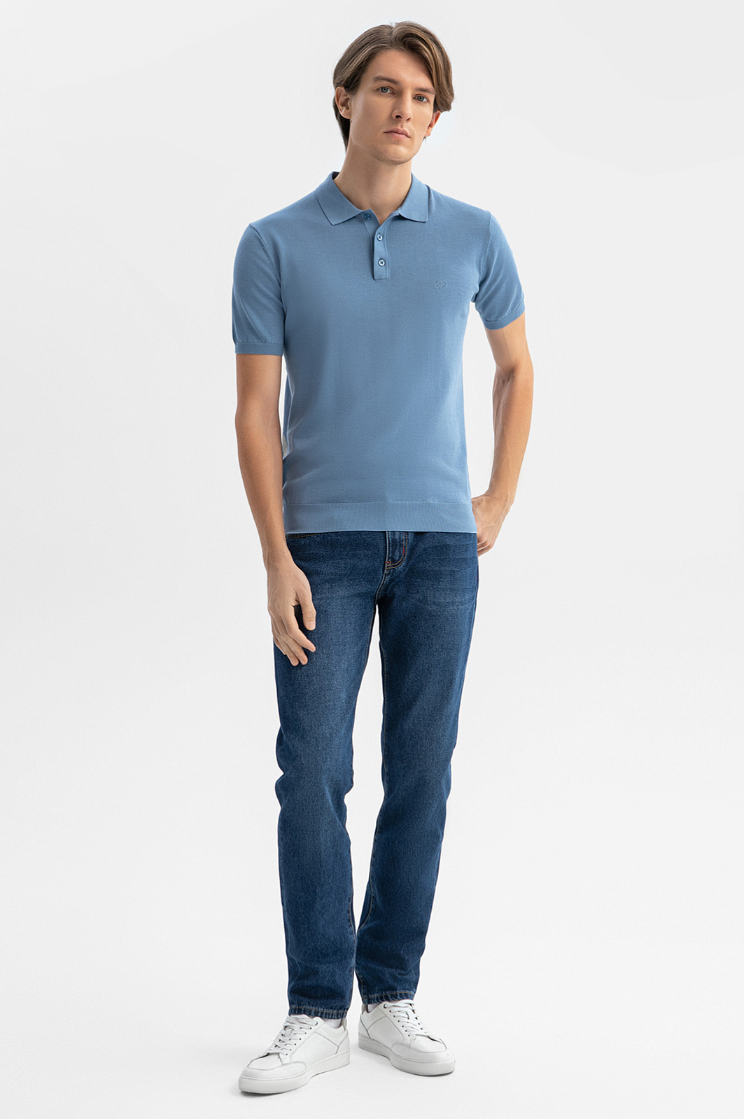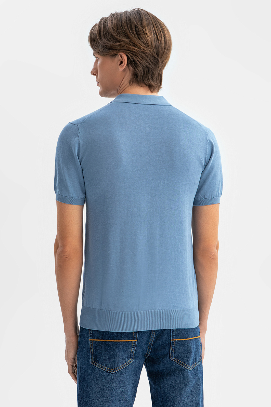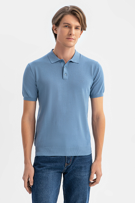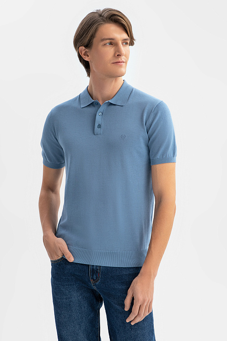 Голубое поло из хлопка, шелка и льна в Краснодаре