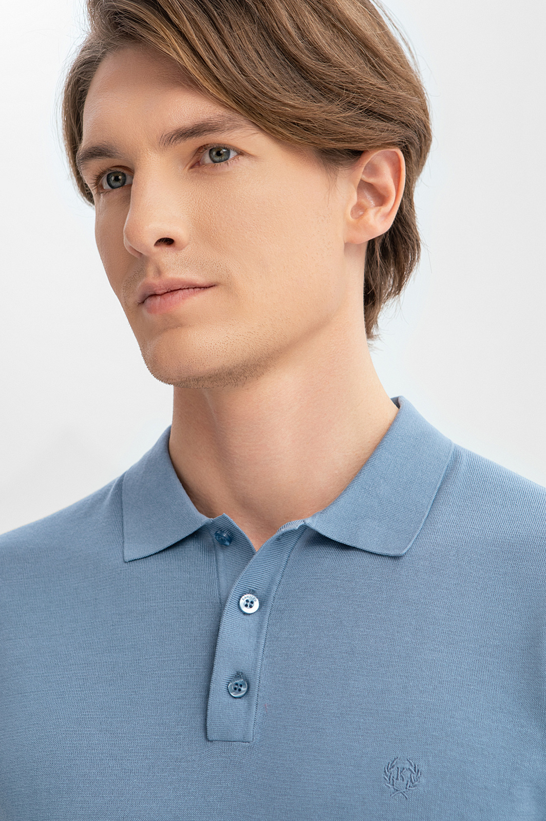 Поло из хлопка, шелка и льна, цвет голубой, цена 8 990 руб., код 269195 - купить в Краснодаре в интернет-магазине KANZLER