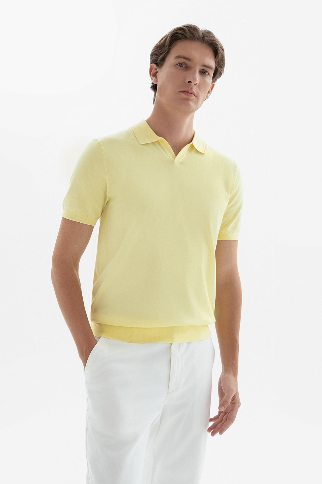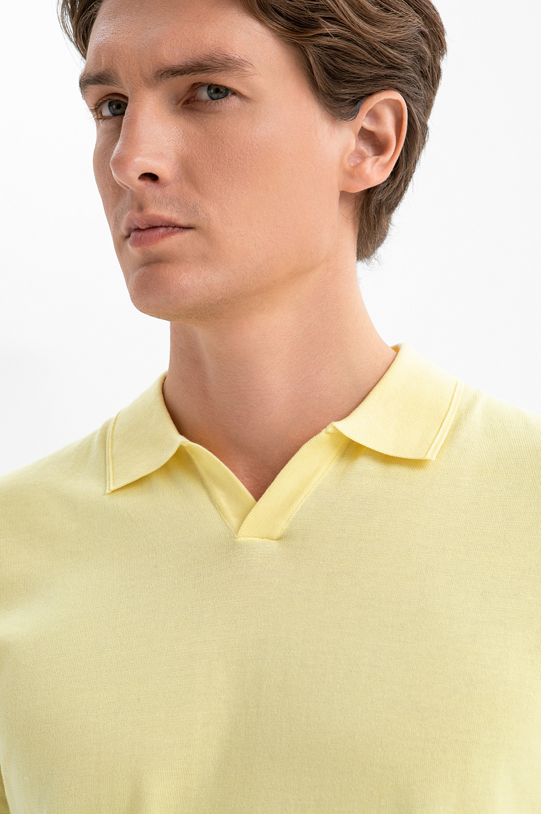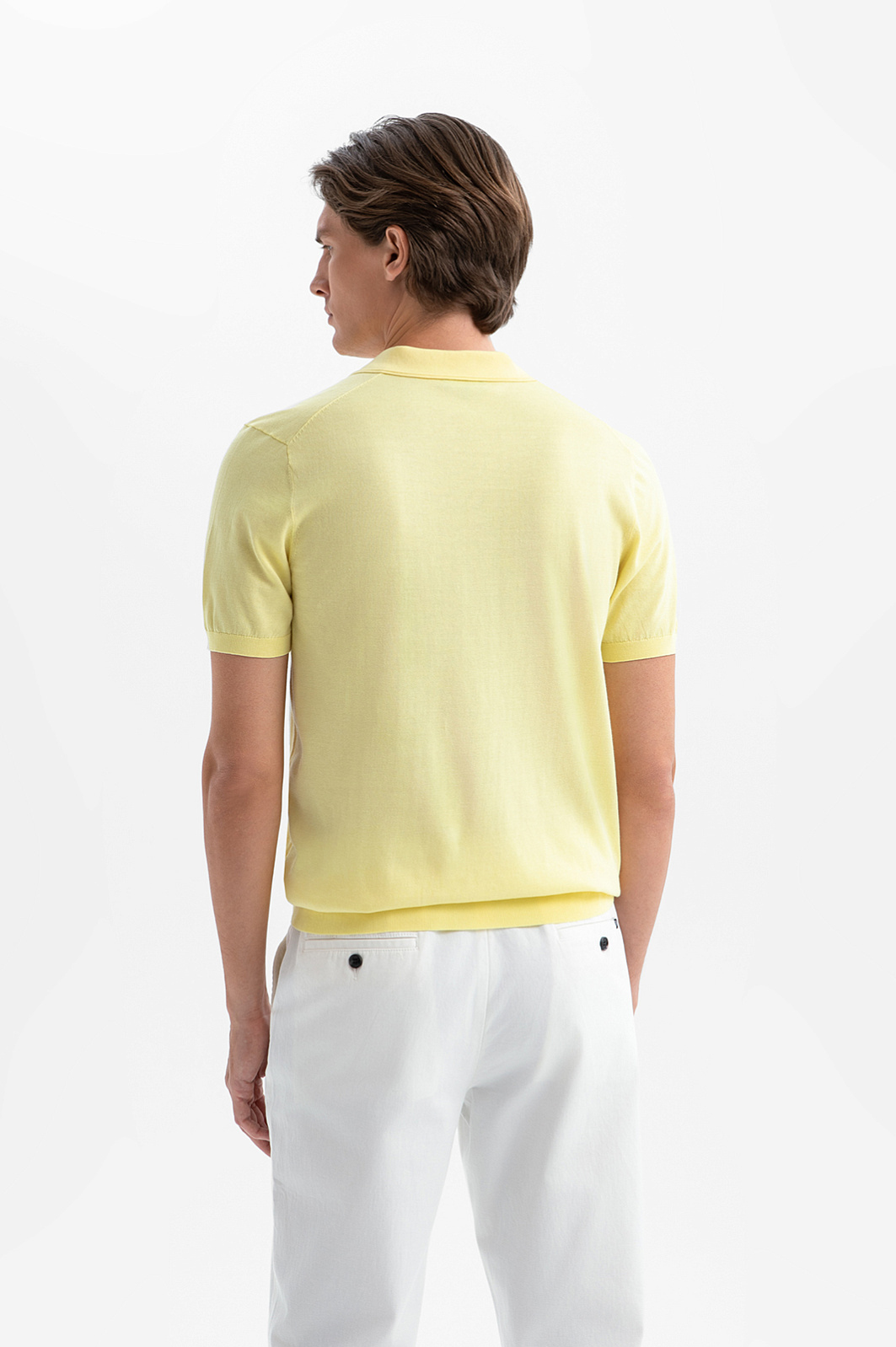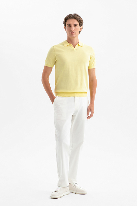 Поло KANZLER из премиального хлопка Пима оттенка лимонного щербета наполняет образ солнечным настроением и непринуждённостью. Аккуратный отложной воротник и небольшой треугольный вырез придают модели расслабленный характер, не выходя за рамки городской эстетики. Трикотажные резинки на рукавах и по низу формируют аккуратный силуэт. В составе дорогой ткани — 100% хлопок Пима. Его волокна — самые тонкие и длинные среди всех видов хлопка. Нежный гипоаллергенный материал приятно ощущается на коже и сохраняет безупречный внешний вид сезон за сезоном.