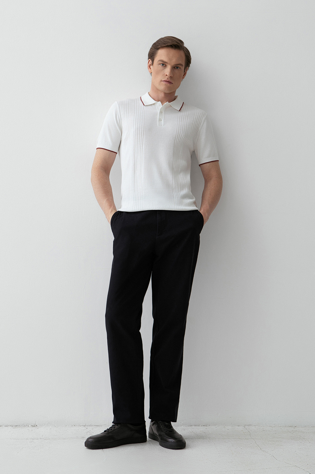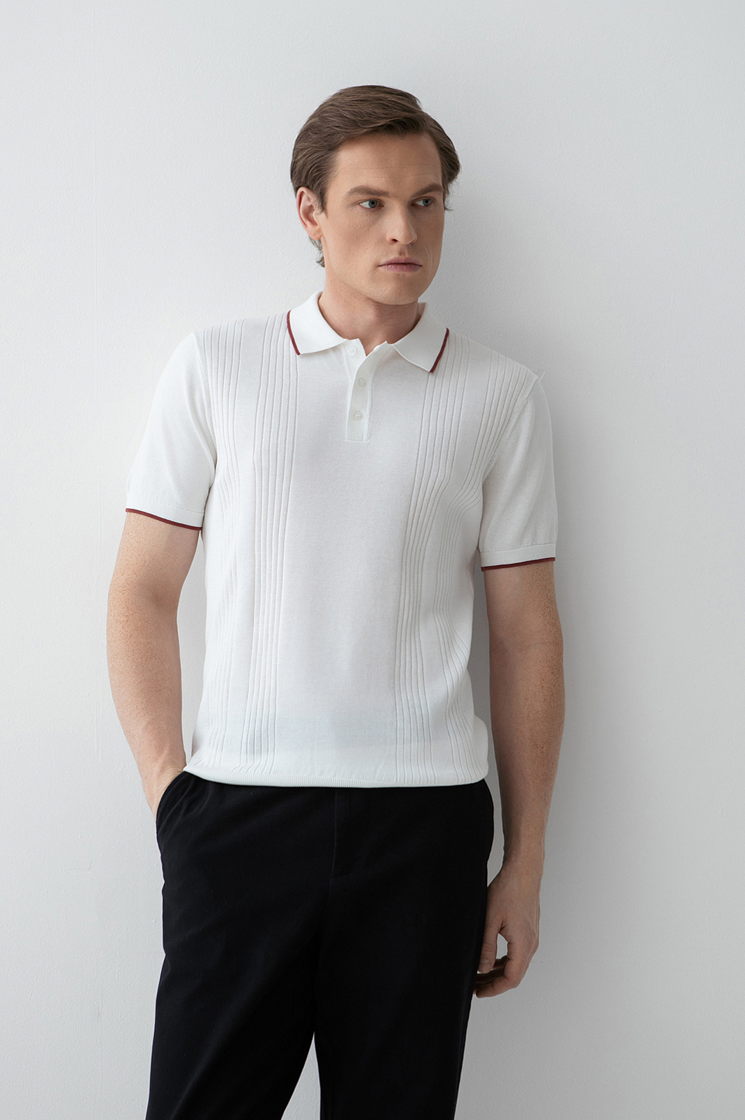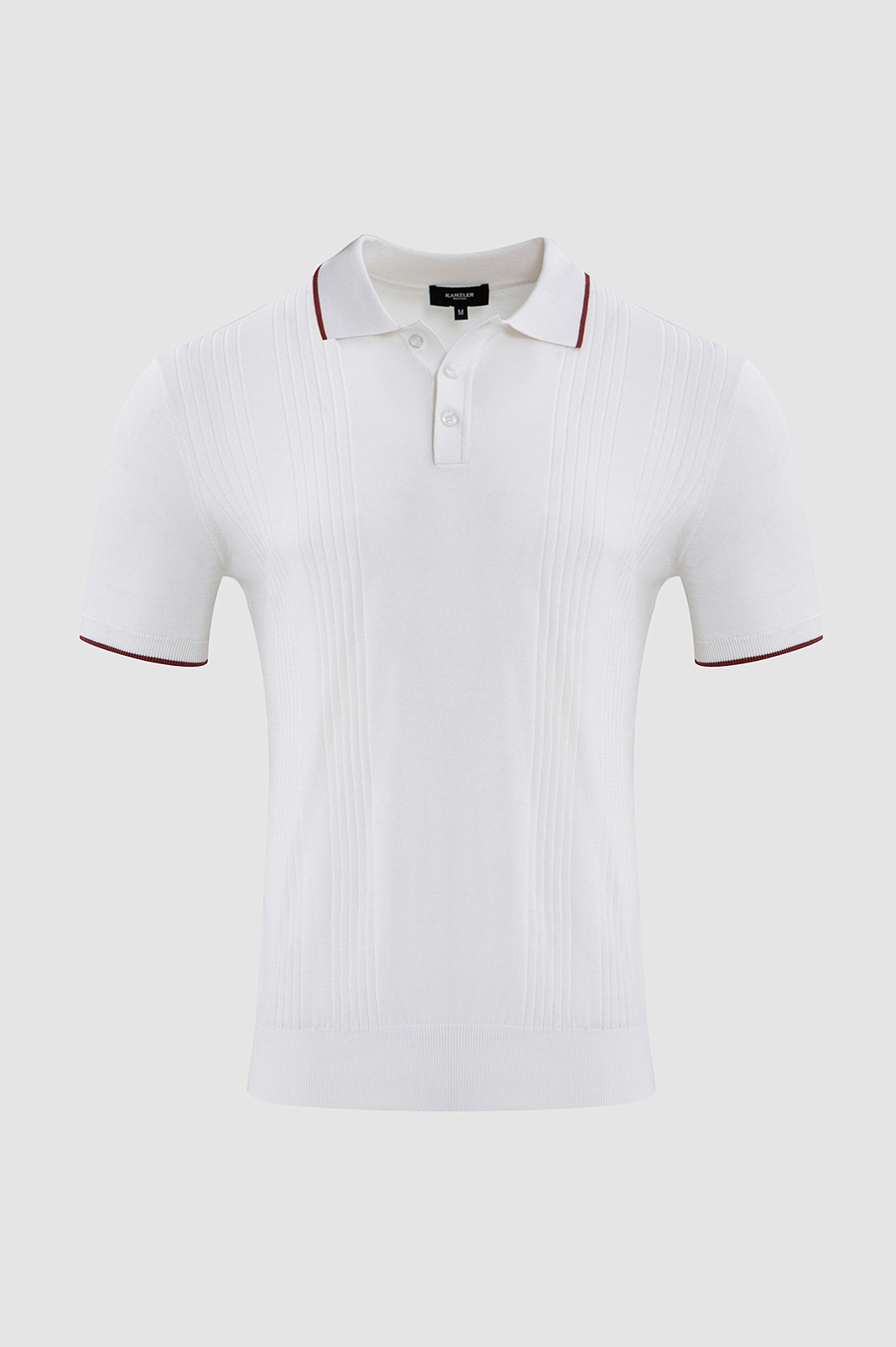 Белое поло KANZLER с коротким рукавом из хлопка, льна и шёлка идеально вписывается в динамичный образ жизни современного мужчины: модель подходит для неспешной прогулки, расслабленного отдыха на веранде, дружеских встреч и свиданий. Контраст белоснежного фона и тонкой коричневой полоски по краю воротника и рукавов создаёт свежий элегантный образ. Строгий узор в виде вертикальных линий добавляет модели архитектурную чёткость и лаконичность. В составе дорогой премиальной ткани — гипоаллергенные натуральные волокна. Хлопок обеспечивает воздухопроницаемость и свежесть, лён — ощущение прохлады, а шёлк придаёт ткани лоск и изысканность.