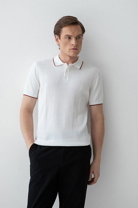 Поло из хлопка, шелка и льна, цвет белый, цена 10 990 руб., код 271109 - купить в Краснодаре в интернет-магазине KANZLER