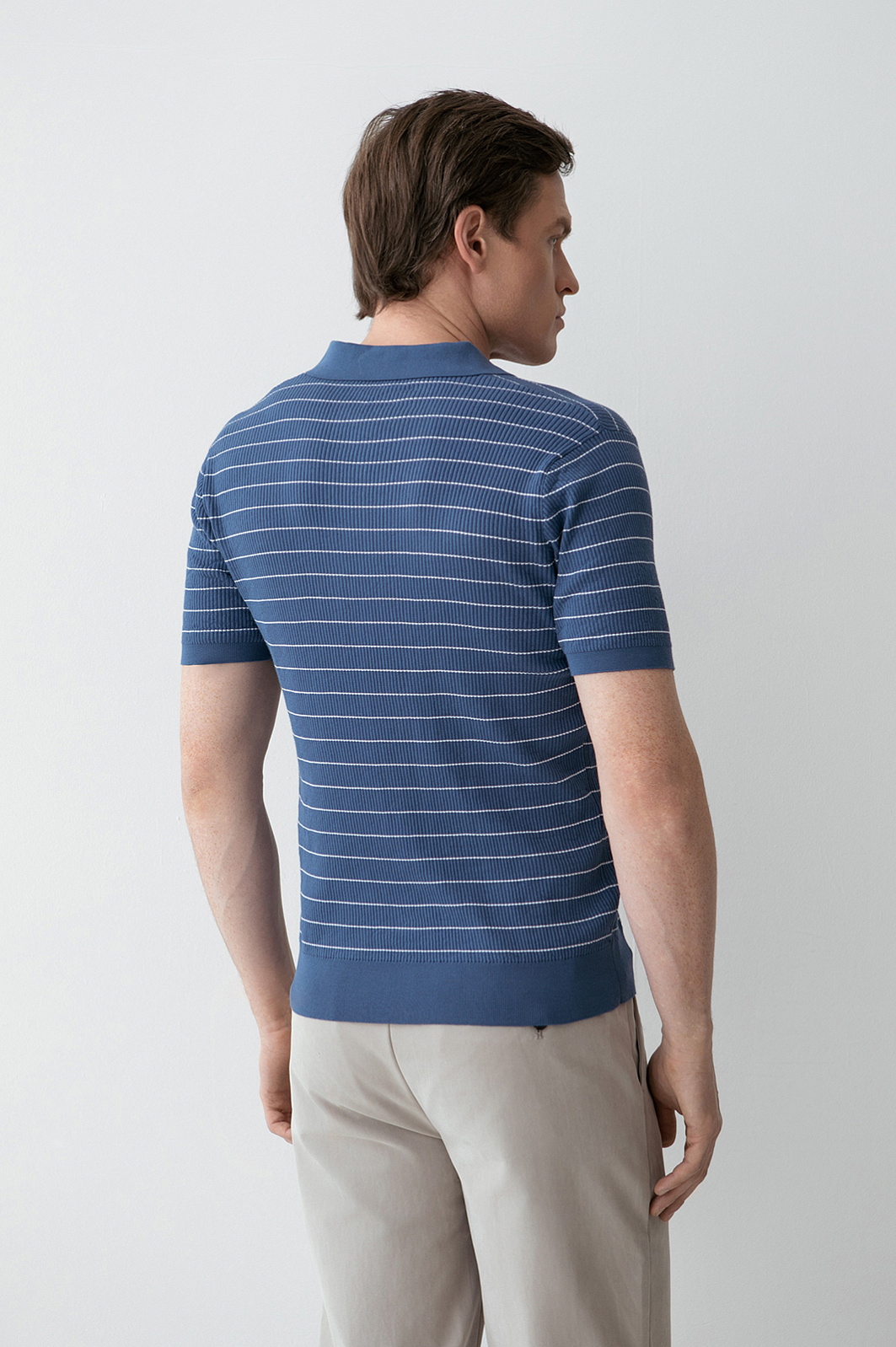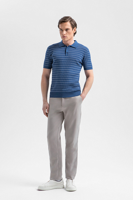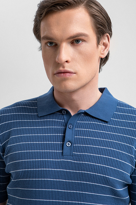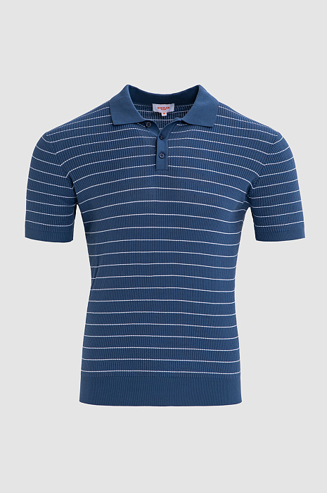 Поло в полоску из хлопка Пима, цвет синий, цена 9 990 руб., код 271114 - купить в Краснодаре в интернет-магазине KANZLER