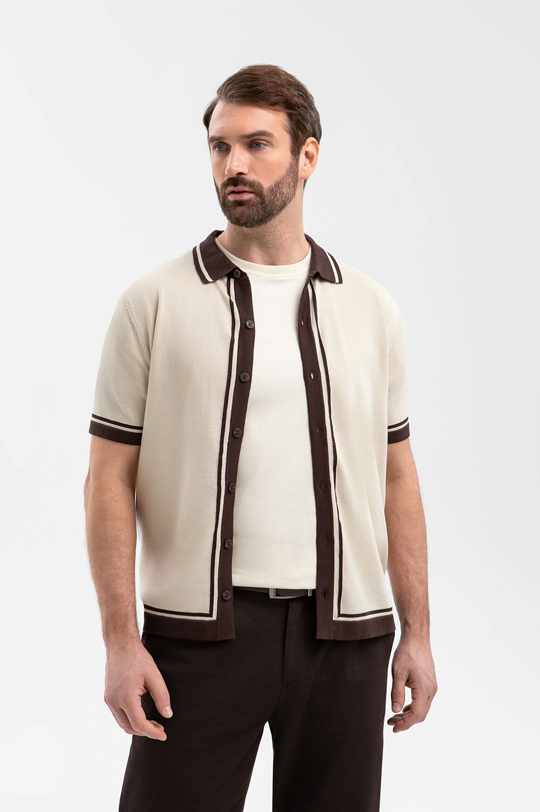 Роскошный кардиган KANZLER из ценного хлопка Пима сочетает выразительный дизайн, сдержанную элегантность и бескомпромиссный комфорт. Он создан для мужчин, которые умеют выглядеть безупречно в любой обстановке — на завтраке в отеле и неспешных прогулках по городу. Бежевый фон задаёт спокойное расслабленное настроение. Контрастные коричневые полосы на воротнике и по краям ассоциируются с натуральными материалами: кожей, деревом, кофе, и добавляют образу теплоты и изысканности. Дорогая пряжа произведена из хлопка Пима, который по праву считается элитным материалом. Его волокна значительно длиннее и тоньше, чем у обычного хлопка, благодаря чему ткань приобретает особую мягкость, исключительную прочность и способность сохранять безупречный внешний вид сезон за сезоном.