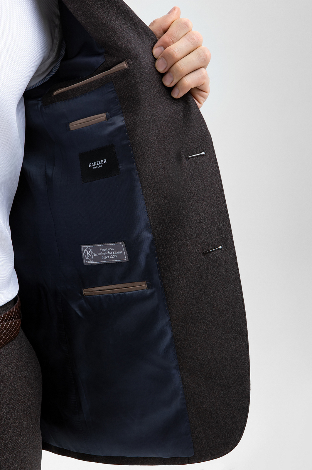 Костюм из шерсти, устойчивой к сминанию и загрязнениям, цвет коричневый, цена 44 980 руб., код - купить в Краснодаре в интернет-магазине KANZLER