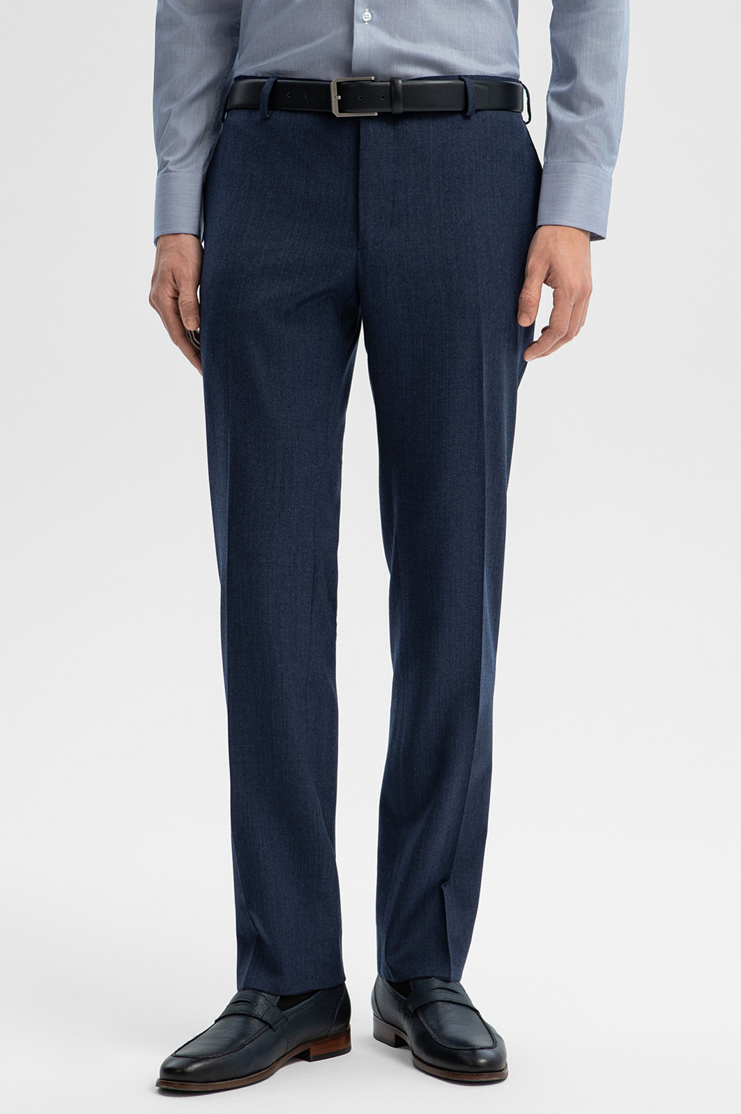 Элегантный костюм KANZLER приглушенного синего цвета — прекрасный вариант для успешной деловой карьеры. Он сшит из тонкой премиальной шерсти мериноса, устойчивой к сминанию, и поэтому никогда не теряет форму. Небольшая вышивка на лацкане пиджака служит изысканным штрихом. Костюм составлен из классического пиджака с нагрудным карманом с листочкой, нижними карманами с клапанами и брюк чистого силуэта, без защипов, со стрелками. Долговечная костюмная ткань — чистая шерсть Супер 120S. Благодаря плотному скручиванию пряжи и упругости натуральных волокон, она превосходно держит форму и не мнется.