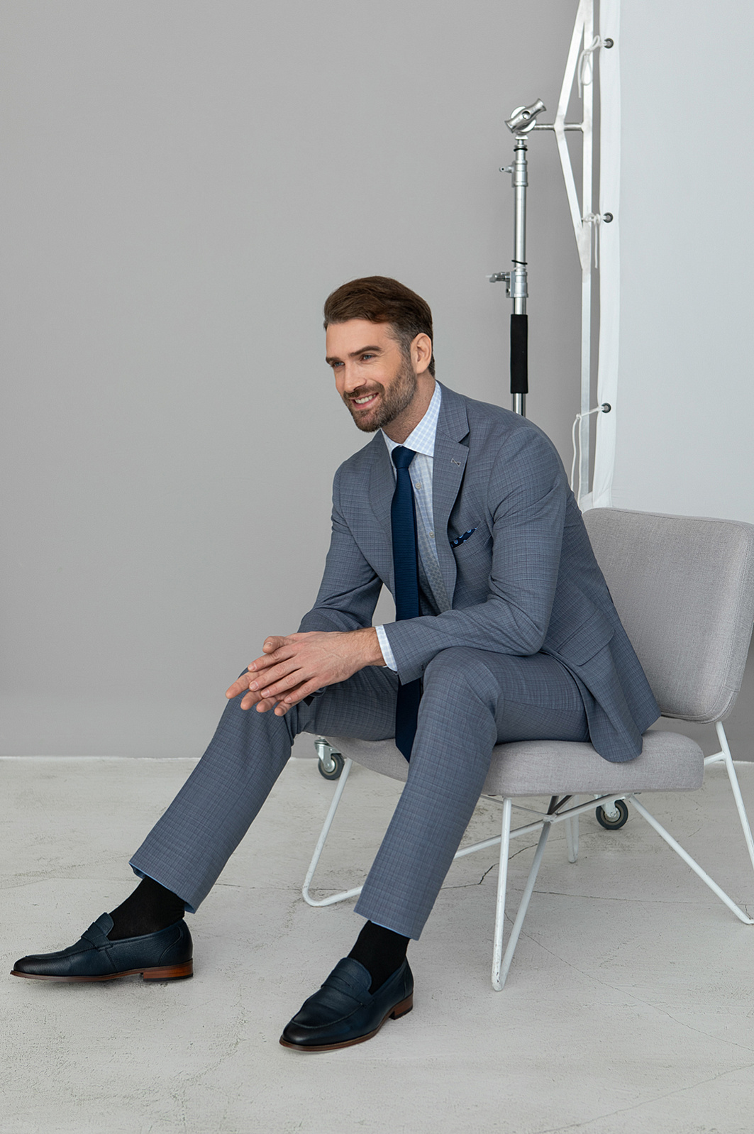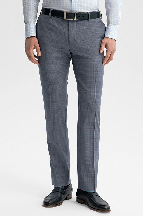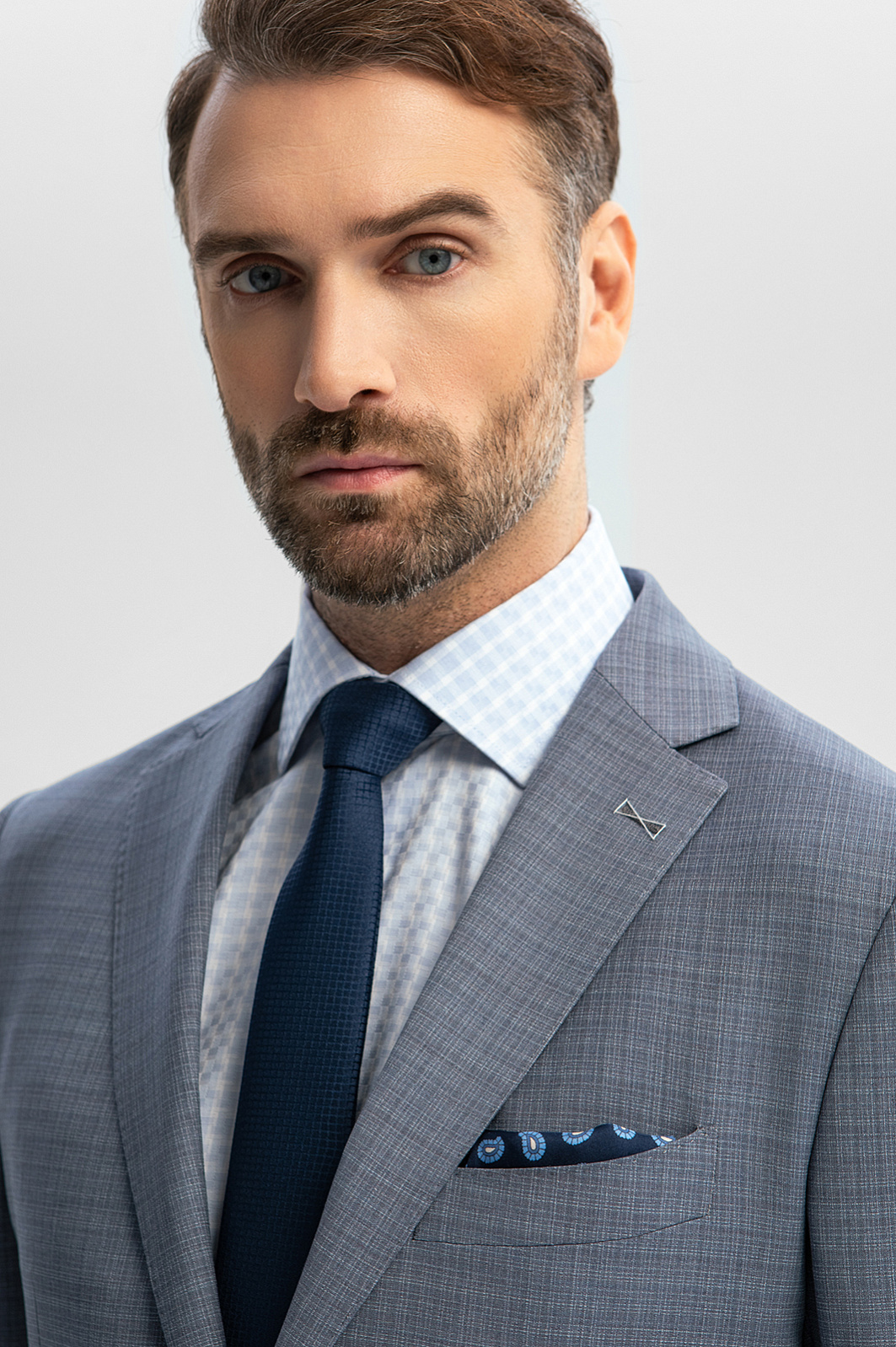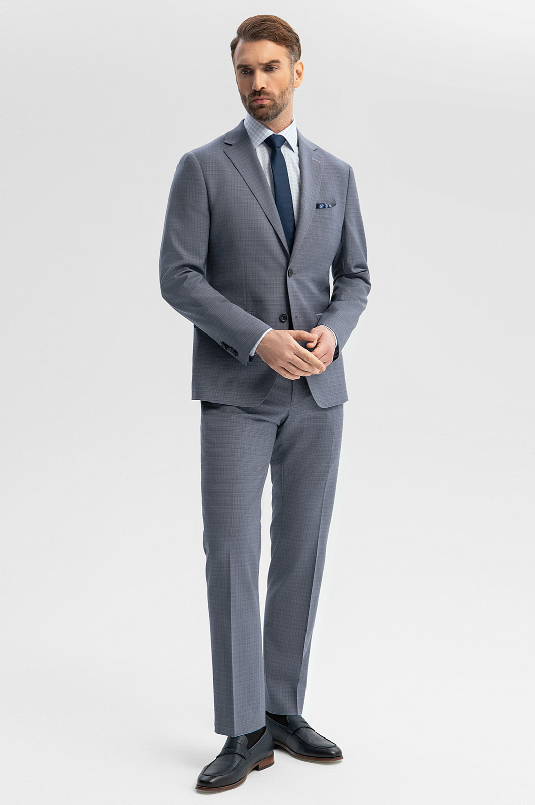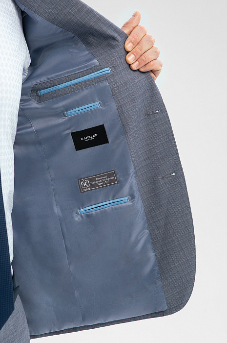 Серый костюм KANZLER в тонкую клетку из дорогой натуральной устойчивой к сминанию ткани сохраняет аккуратный вид в любой ситуации. Секрет — в упругих волокнах шерсти мериноса и особой обработке ткани. Элегантная двойка составлена из классического однобортного пиджака приталенного силуэта с естественной линией плеча и слегка зауженных брюк со стрелками. Это отличная инвестиция в безупречный стиль и комфорт. Благородный износоустойчивый материал из тонкой благородной овечьей шерсти Супер 120S сохраняет естественное тепло тела и подходит для любого сезона. Небольшое добавление лайкры защищает ткань от растяжения.