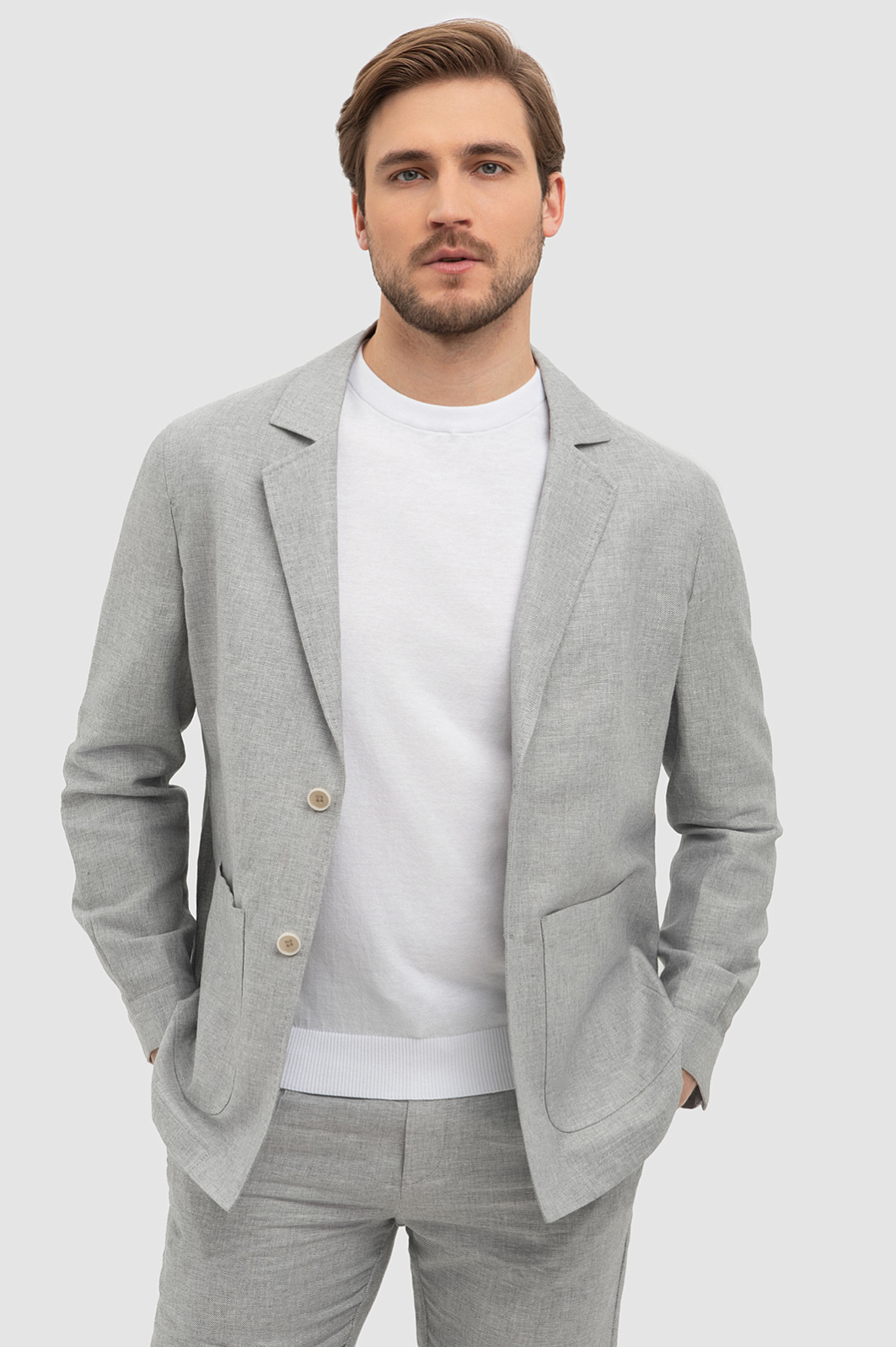 Костюм KANZLER изо льна и хлопка олицетворяет изящество и свободу. Благородный светло-серый оттенок создает непринужденный, но элегантный образ. Натуральный материал дарит ощущение свежести, обеспечивая идеальный микроклимат и в жаркий, и в прохладный день. Изысканный однобортный пиджак с боковыми шлицами не стесняет движений, даря ощущение легкости и свободы. бермуды с защипами и манжетами-отворотами привносят нотку неформальности. Костюм создан для современного мужчины, предпочитающего быть в центре внимания, оставаясь собой.