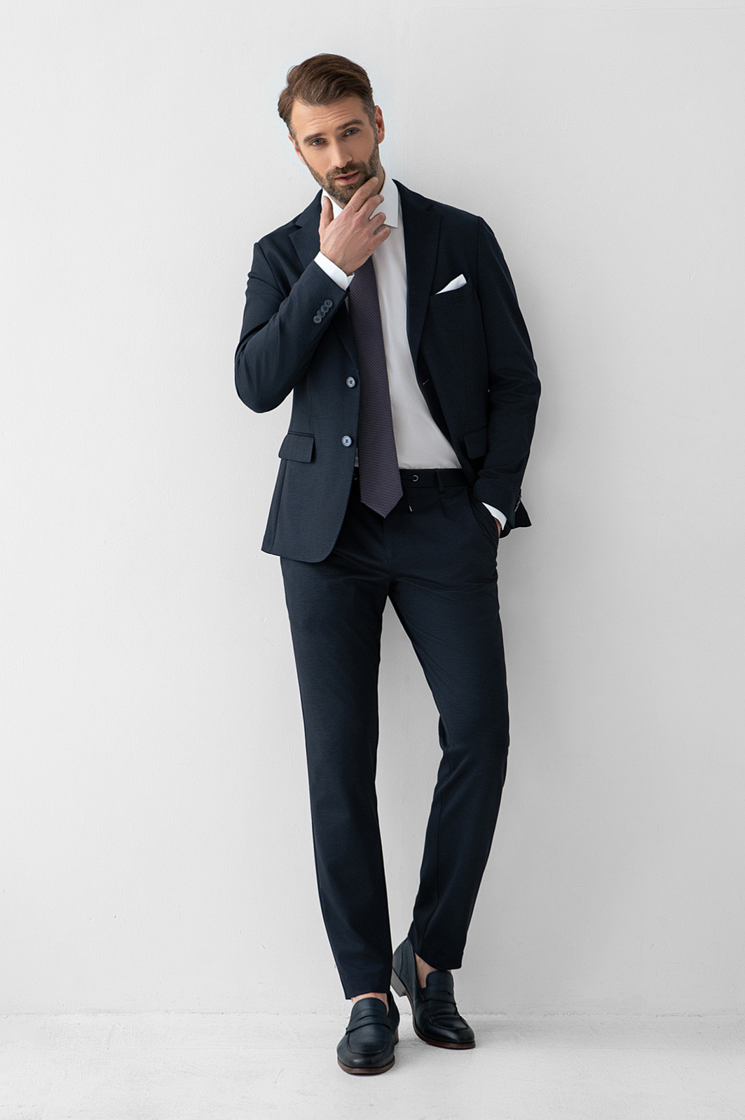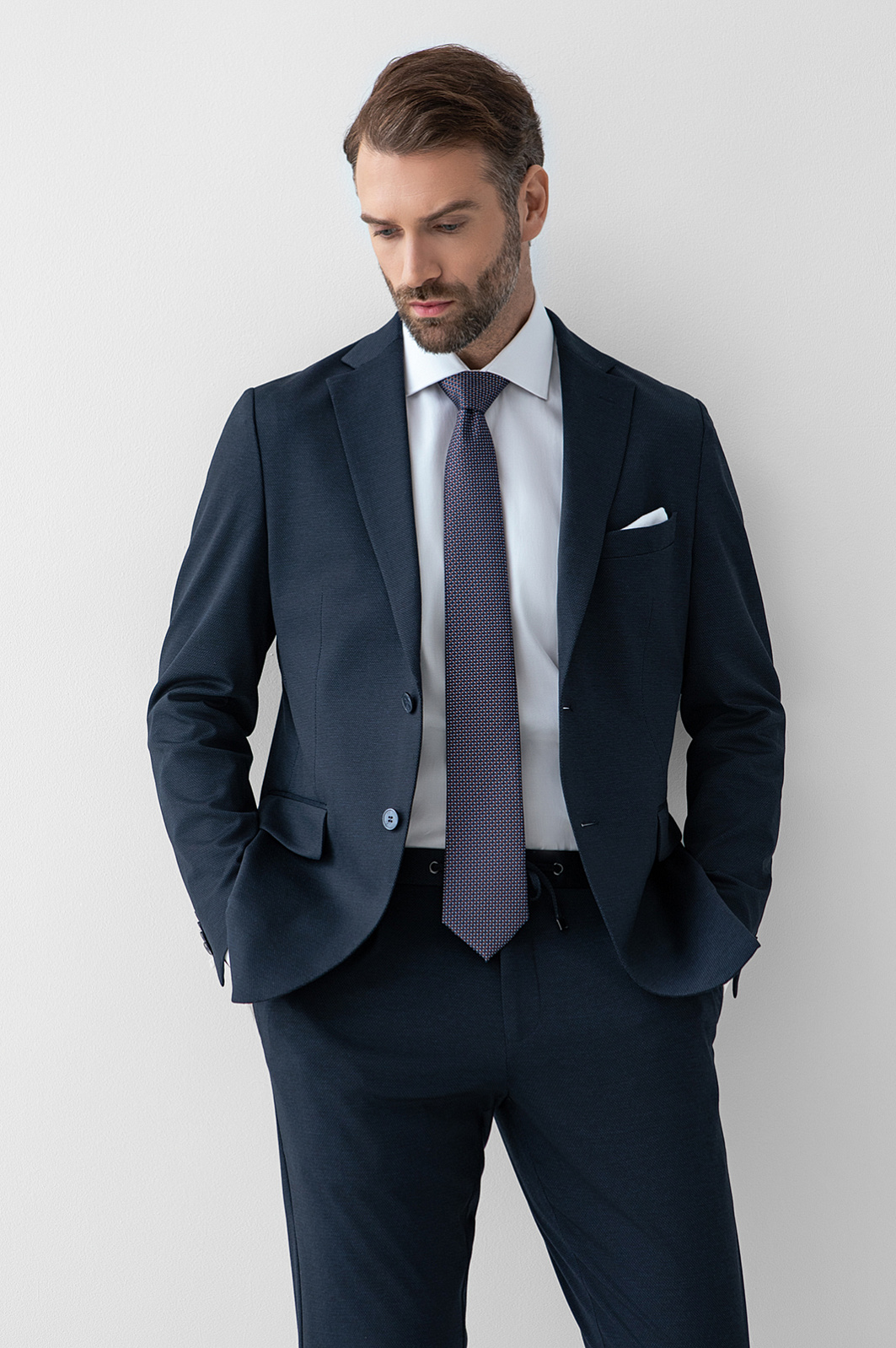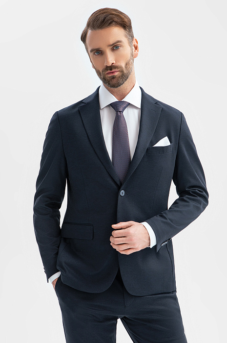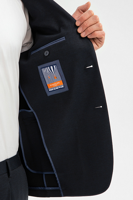 Костюм KANZLER глубокого темно-синего цвета — вариант для создания профессионального делового образа. В меру формальный, но при этом современный и практичный костюм из плотной смесовой ткани обеспечит безупречный вид в офисе. Пару классическому облегченному однобортному пиджаку с двумя шлицами сзади и карманами с клапанами составляют удобные брюки на кулиске. Слегка зауженный силуэт стройнит и добавляет элегантности. Технологичная ткань костюма состоит из волокон трех видов. Она хорошо держит форму и отличается прочностью, устойчивостью к образованию складок и неприхотливостью в уходе.