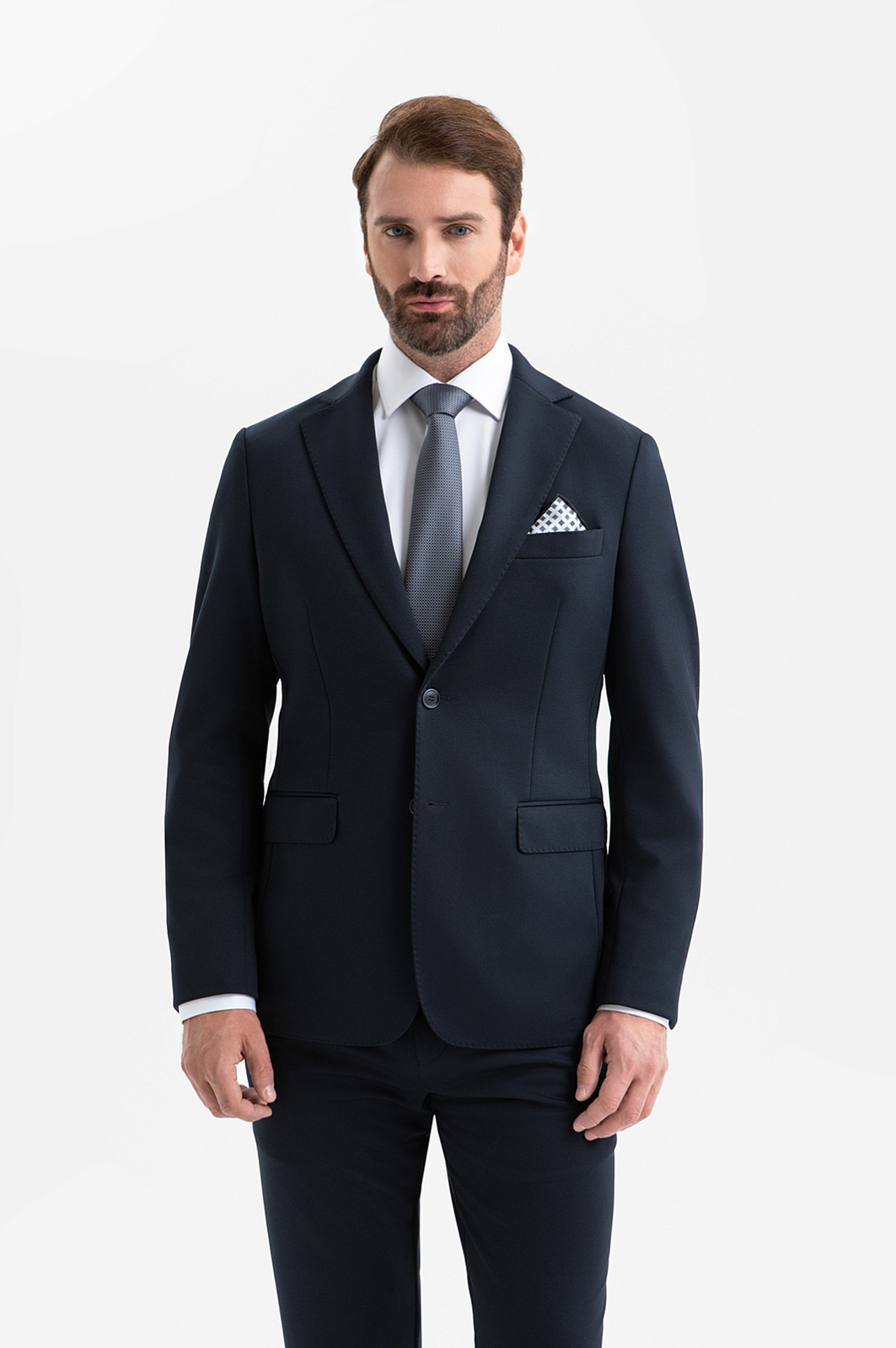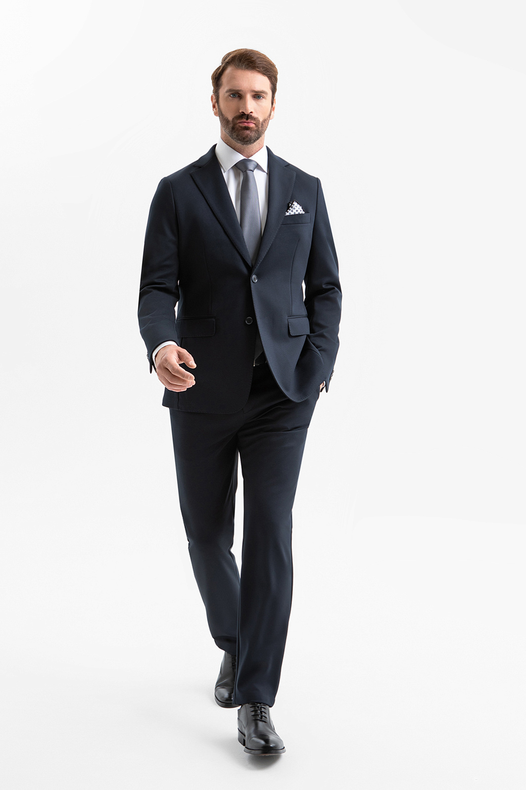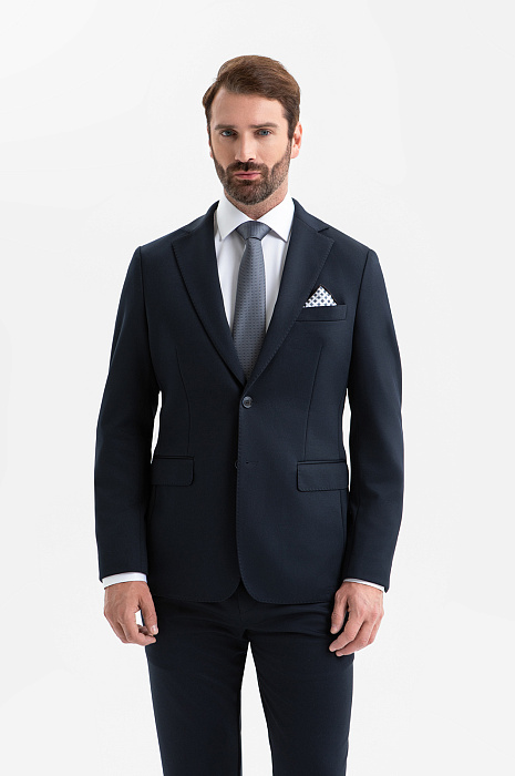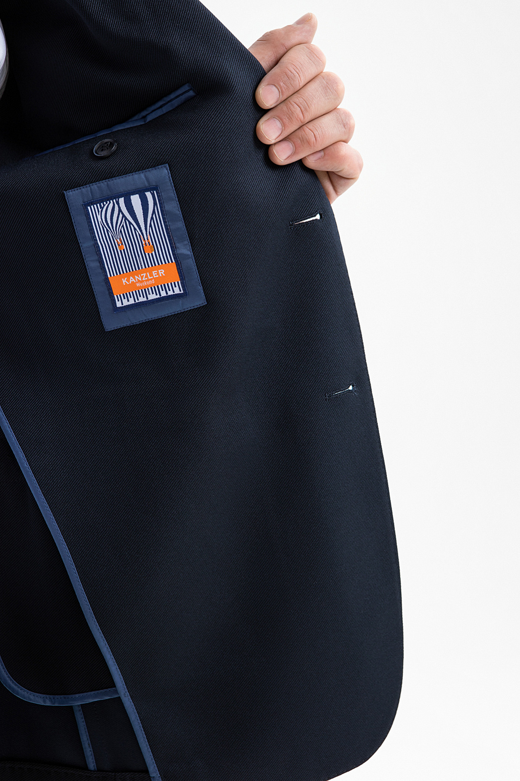 Современный элегантный костюм KANZLER благородного сине-серого оттенка — выверенный баланс традиций и инноваций. Практичная пара сокращает утренние сборы и делает офисную жизнь более комфортной. Костюм составлен из облегчённого однобортного пиджака без подкладки с накладными карманами и брюк слегка зауженного кроя с кулиской и резинкой на поясе. Костюм создан из практичного технологичного полотна. В составе — прочный полиэстер с добавлением эластичного спандекса. Сочетание современных волокон делает ткань устойчивой к сминанию, лёгкой в уходе и адаптирующейся к индивидуальным особенностям фигуры.