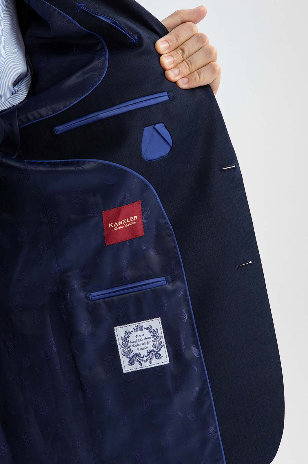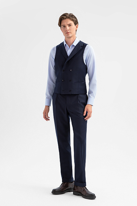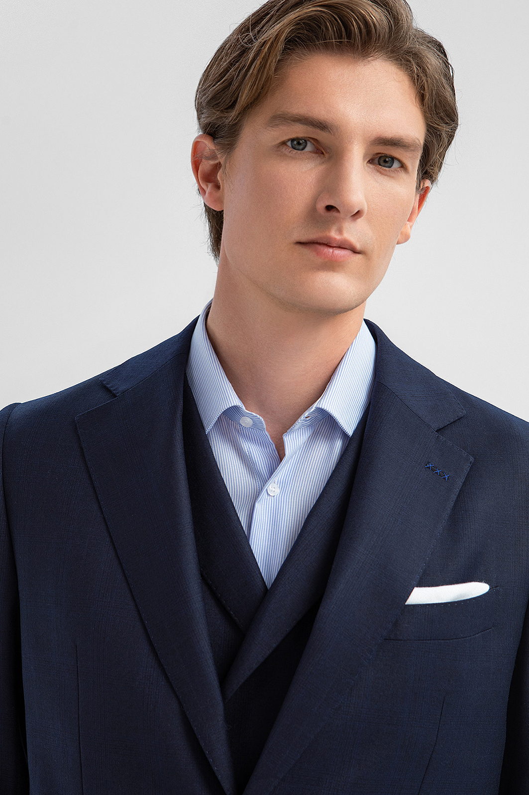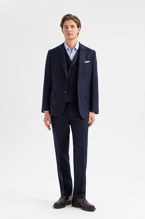 Костюм-тройка из шерсти и кашемира с водоотталкивающей обработкой, лимитированная коллекция, цвет синий, цена 53 970 руб., код - купить в Краснодаре в интернет-магазине KANZLER