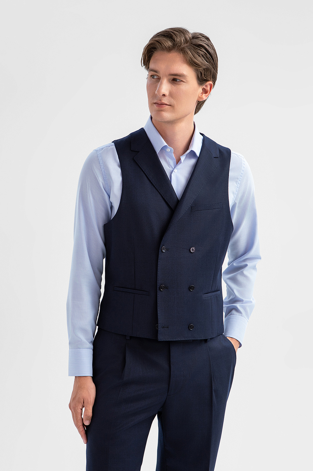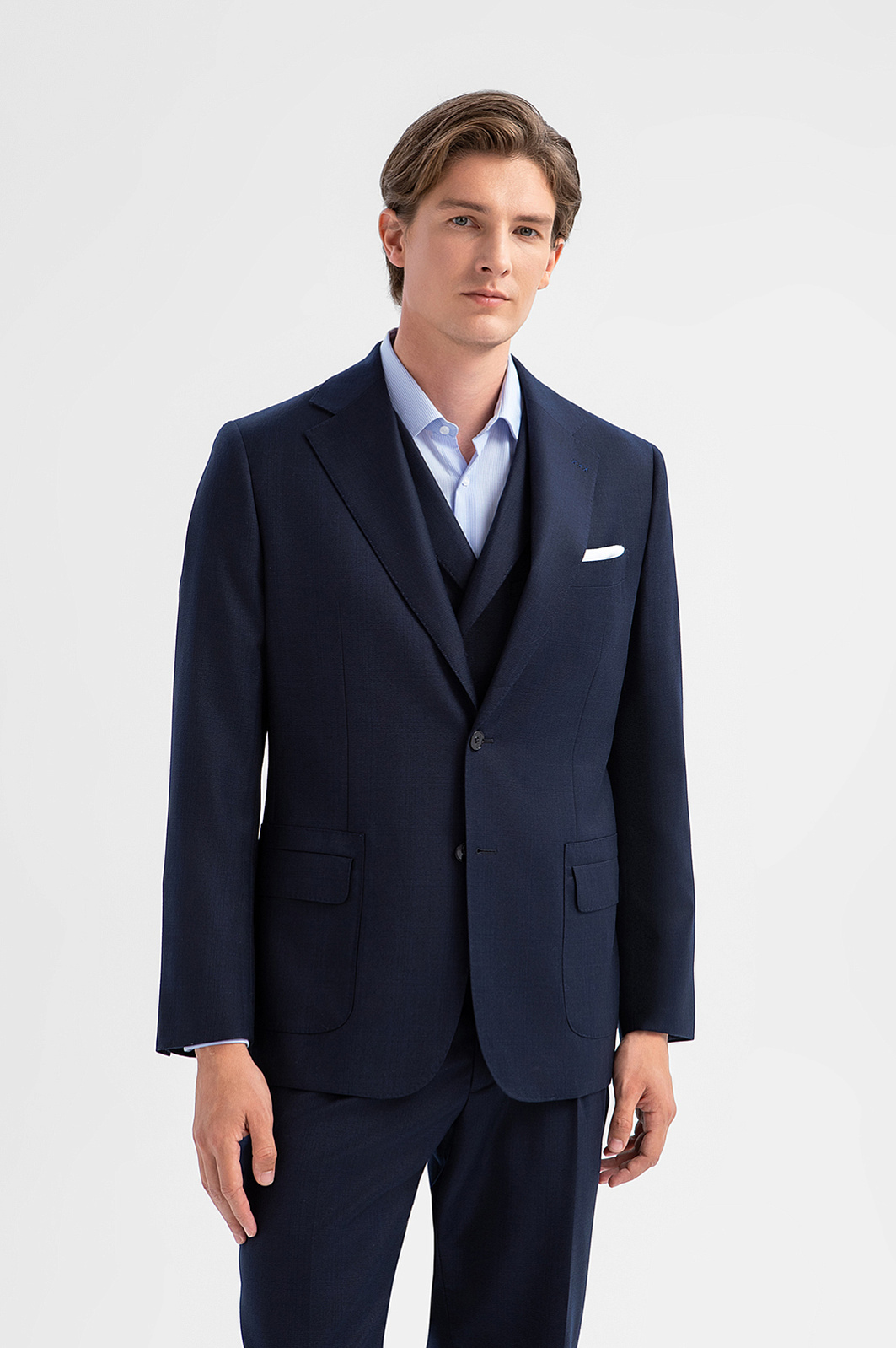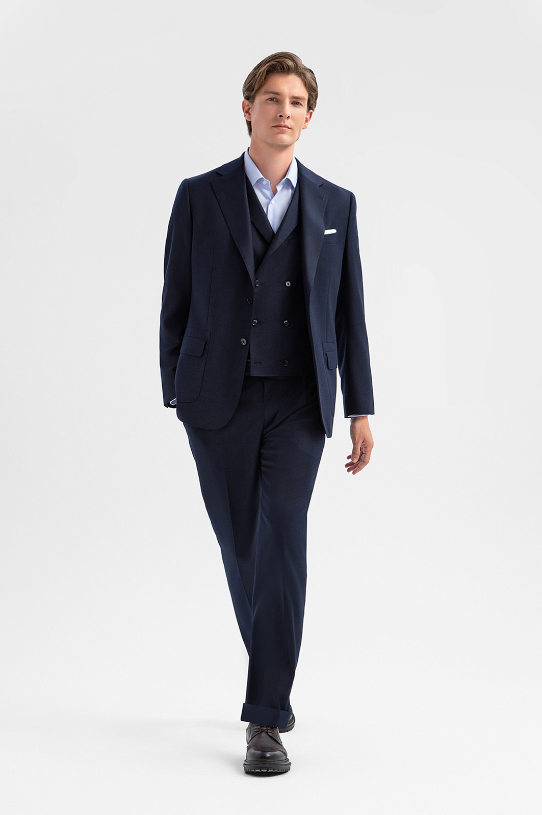 Костюм-тройка из шерсти и кашемира с водоотталкивающей обработкой, лимитированная коллекция, цвет синий, цена 53 970 руб., код - купить в Краснодаре в интернет-магазине KANZLER