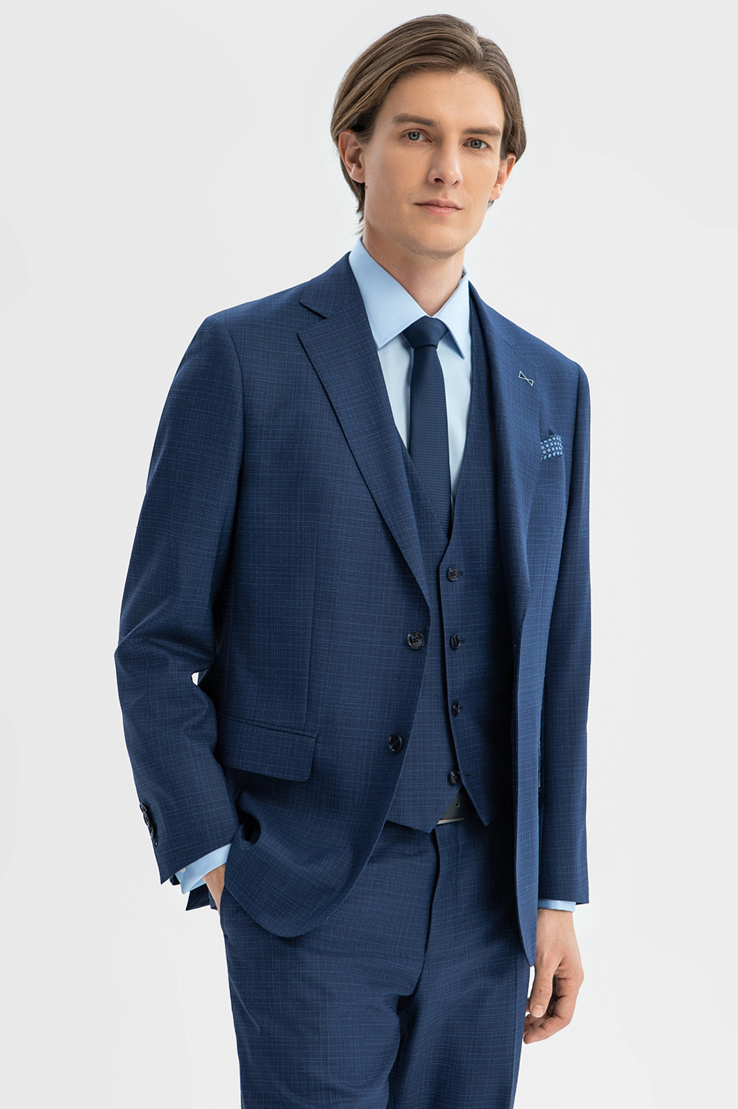 К пиджаку взял брюки и жилет - отличный костюм-тройка. Пошив качественный, материал приятный и технологичный