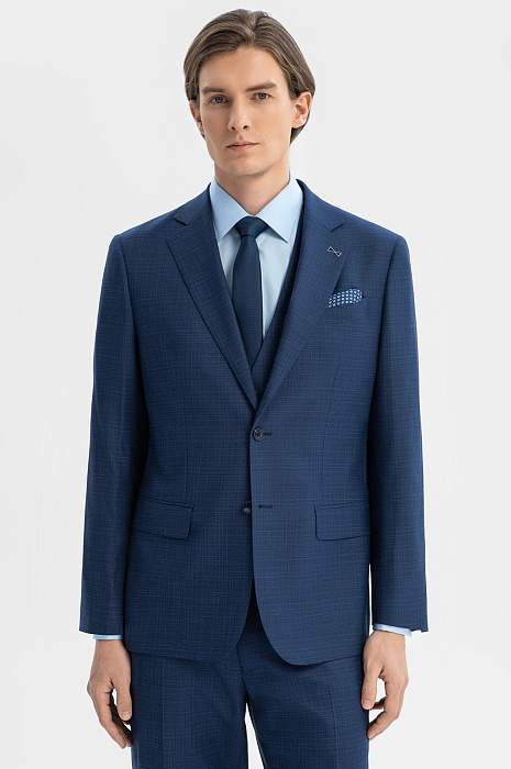 Синий пиджак из шерсти, хлопка и льна с водоотталкивающей обработкой в Краснодаре