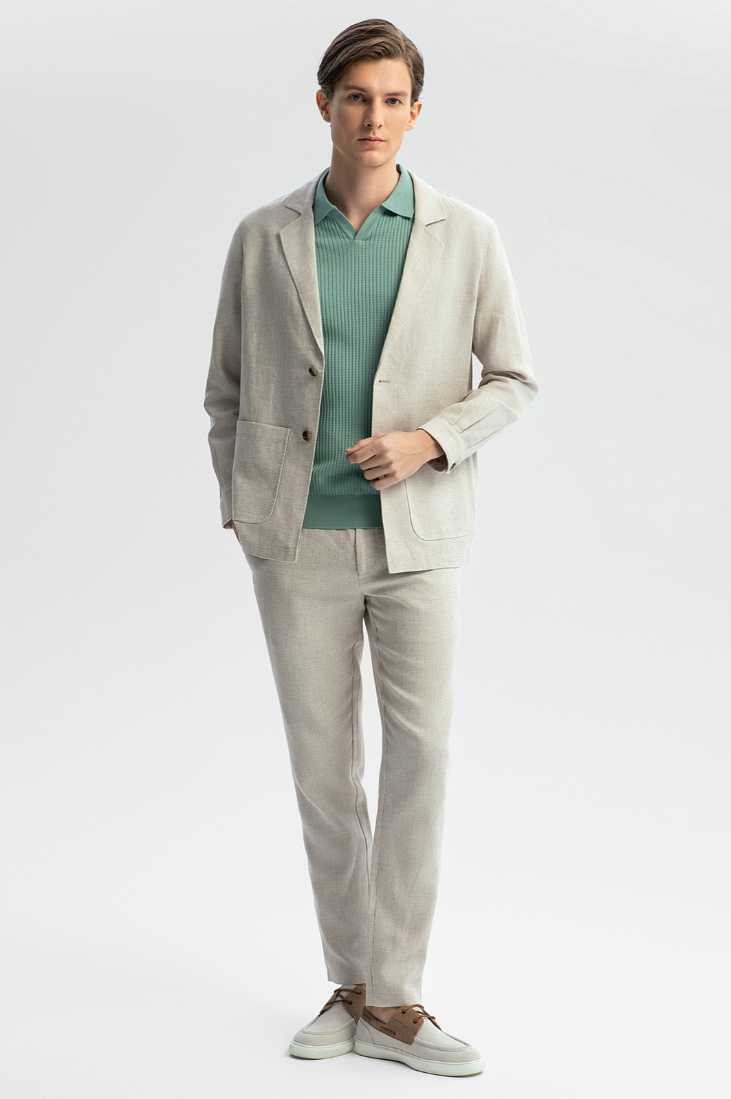 Стильный свободный пиджак KANZLER изо льна и хлопка песочного оттенка — комфортная и расслабленная модель для теплых дней. В отличие от строгих пиджаков с жесткими плечами и подкладкой, он мягкий и облегченный, чтобы стать идеальным спутником для прогулок и путешествий. Универсальный Классический крой сочетается с примечательными деталями — декоративным портновским швом, аккуратными накладными карманами и рубашечными манжетами. Легкая ткань полотняного переплетения изо льна и хлопка — идеальный материал для жаркого лета. Лен создает ощущение прохлады, а воздушный дышащий хлопок делает ткань более мягкой и легкой. Параметры модели: рост 191, 97-77-99 Размер на модели: 50