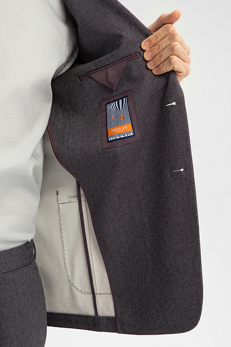 Легкий стильный пиджак KANZLER из ткани антрацитового оттенка с эффектом меланжа — удобный и практичный вариант для офиса. Ткань мягко облегает тело. Приталенный крой придает фигуре изящество, на контрасте, подчеркивает мужественную линию плеч и талию. Вместительный внутренний карман служит для хранения карточек и документов. Технологичная ткань пиджака отличается непревзойденной долговечностью и износоустойчивостью. Она создана из прочного полиэстера, легкой и приятной на ощупь вискозы и эластичного спандекса, который поддерживает аккуратный вид и форму пиджака. Для составления костюма-двойки, пиджак можно дополнить удобными офисными брюками KANZLER антрацитового оттенка.