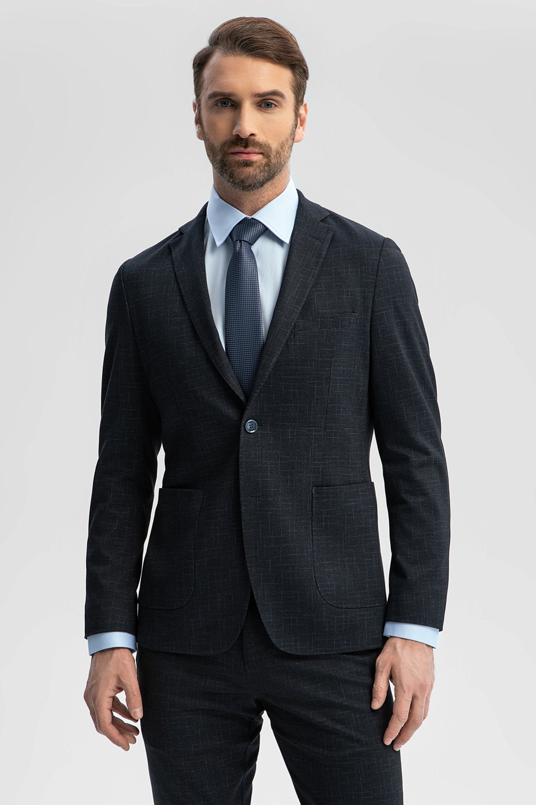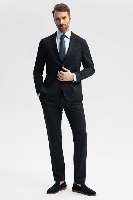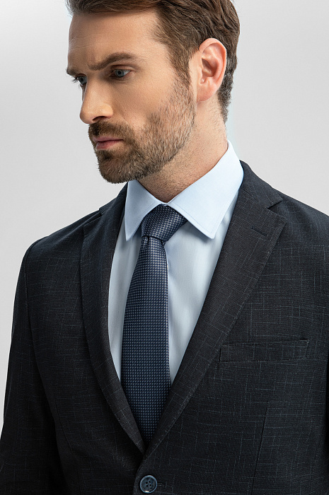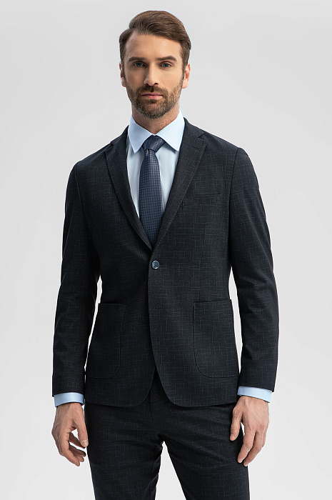 Элегантный облегченный пиджак KANZLER с накладными карманами и узкими лацканами серо-синего оттенка с деликатным рисунком на ткани — идеальный вариант для офиса. Модель украшают пуговицы, отливающие голубым цветом. Ткань мягко облегает тело. Приталенный крой придает фигуре легкость, подчеркивает мужественную линию плеч и талию. Вместительный внутренний карман служит для хранения карточек и документов. Технологичная ткань пиджака отличается непревзойденной долговечностью и износоустойчивостью. Она создана из прочного полиэстера, легкой и приятной на ощупь вискозы и эластичного спандекса, который поддерживает аккуратный вид и форму пиджака. Для составления костюма-двойки, пиджак можно дополнить удобными офисными брюками KANZLER на кулиске из этой же ткани.