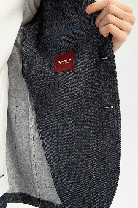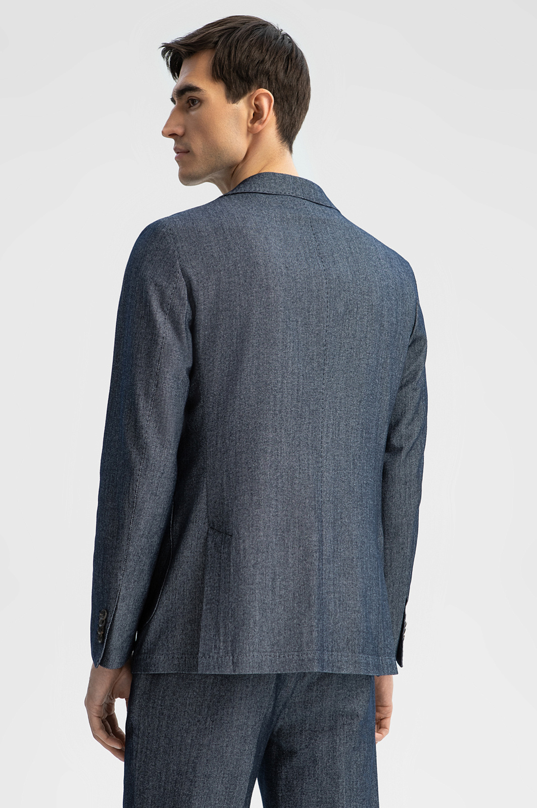 Пиджак из хлопка и шерсти Lanificio TG di Fabio, лимитированная коллекция, цвет синий, цена 24 990 руб., код 269375 - купить в Краснодаре в интернет-магазине KANZLER