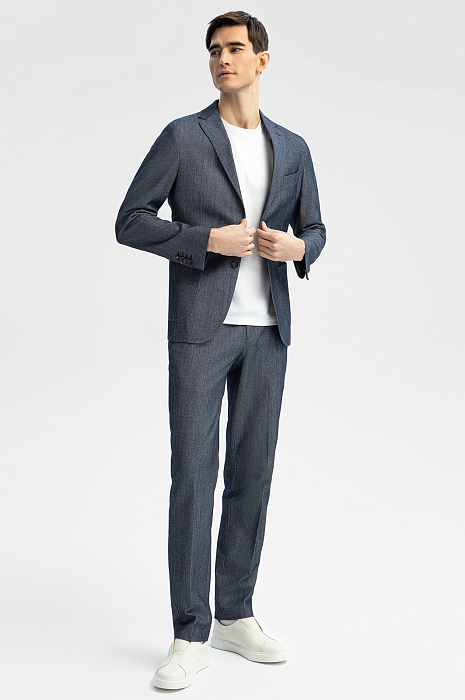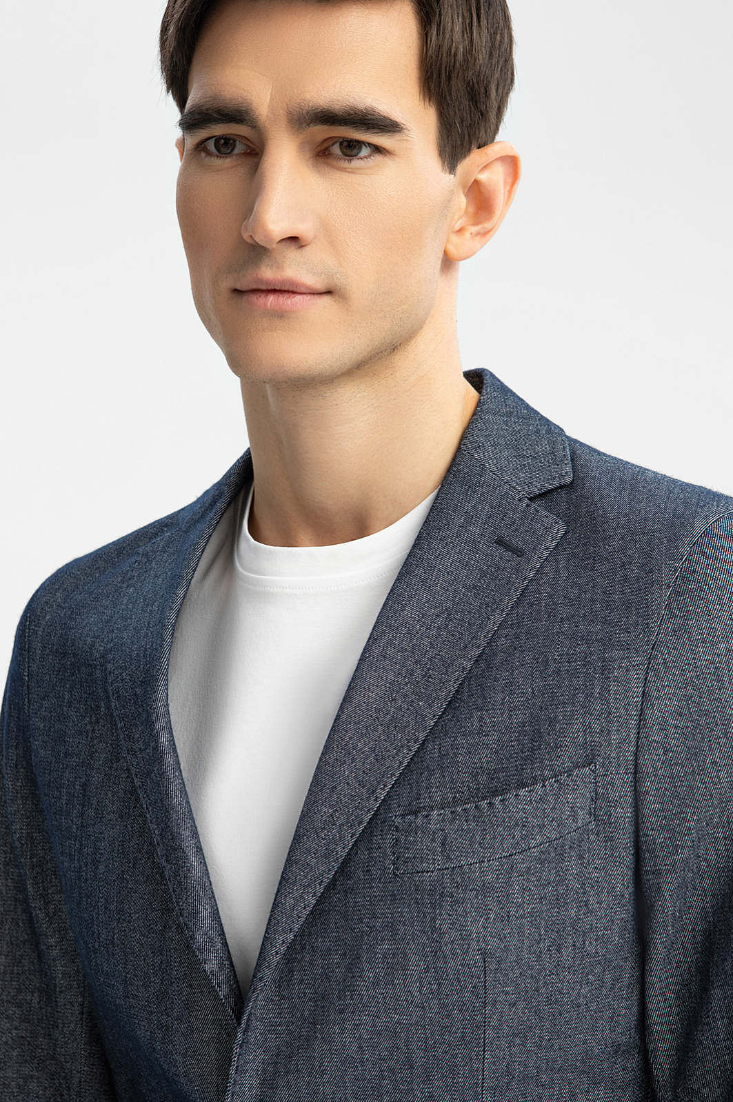Отличный пиджак. Взял в комплекте с брюками, получился очень стильный костюм. Приятный материал, пиджак сел как влитой, ощущается комфортно и невесомо.