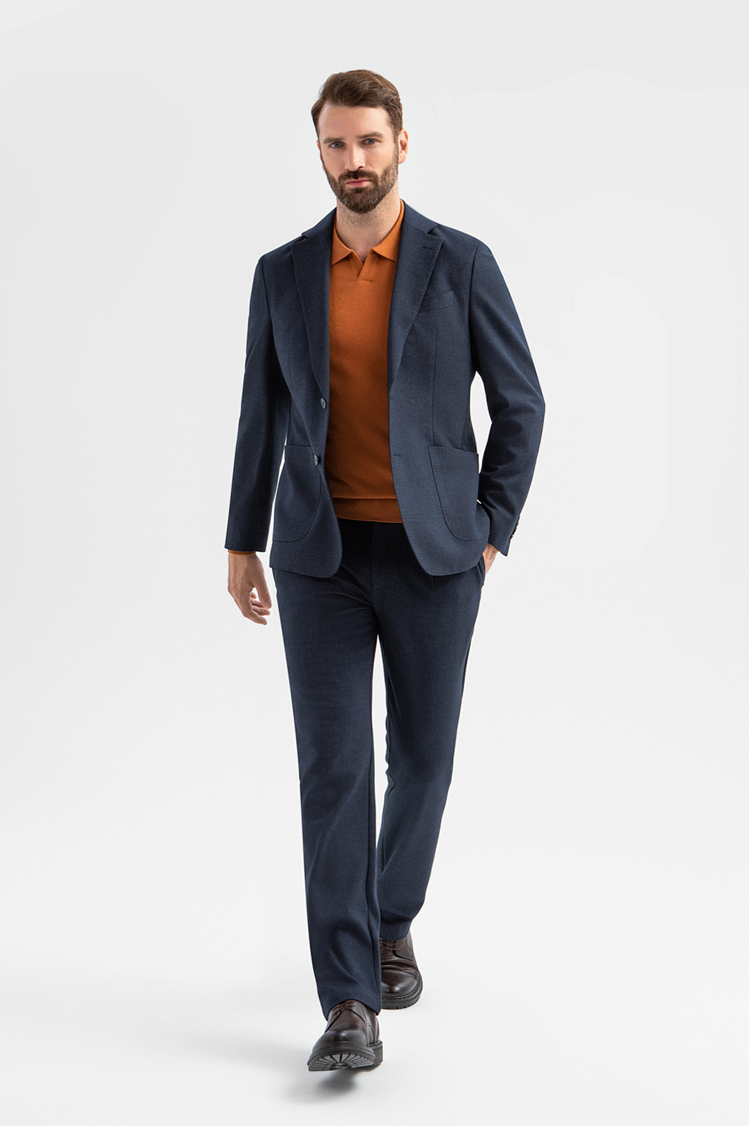 Однобортный пиджак KANZLER спокойного синего цвета — современный вариант для тех, кто ценит практичность и элегантность в повседневной одежде. Прилегающий крой подчёркивает мужественность фигуры, а накладные карманы придают модели актуальный вид. Облегчённая конструкция без подкладки позволяет носить пиджак в любое время года. Широкий отворот с внутренней стороны имеет дополнительные карманы для хранения необходимых мелочей. Две шлицы сзади обеспечивают комфорт при движении. Смесовый материал отличается мягкостью, износостойкостью и лёгким уходом: ткань сохраняет форму, не требует сложной чистки и долго выглядит безупречно. Параметры модели: рост 189, 102-80-99 Размер на модели: 50