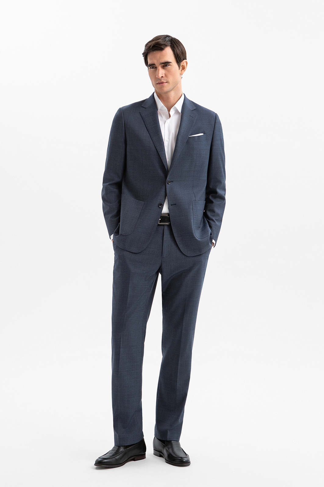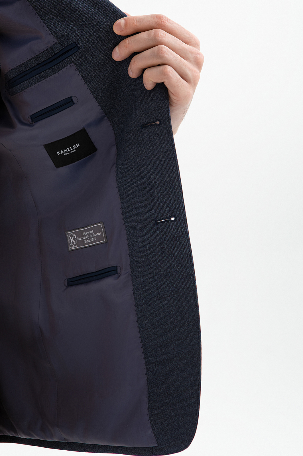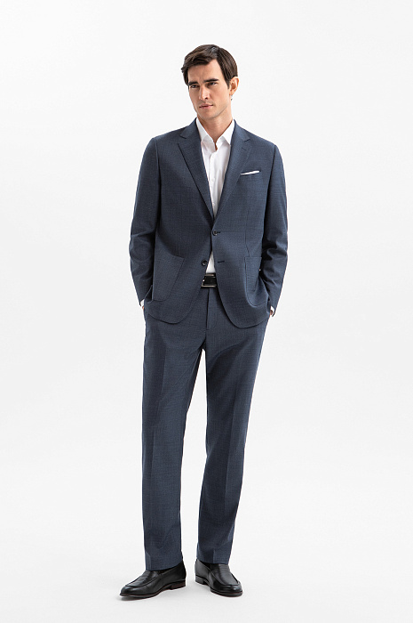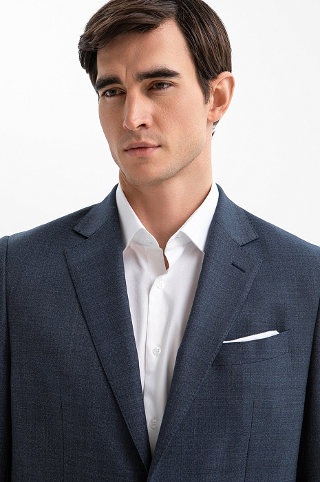 Пиджак KANZLER выполнен из тонкой костюмной шерсти глубокого синего цвета. Универсальный прямой крой задаёт строгость линий, аккуратные накладные карманы смягчают формальность образа. Шлицы сзади помогают поддерживать безупречную посадку в движении. Небольшая вышитая фирменная бабочка на лацкане работает как изящное украшение. Благородный натуральный материал из нежной тонкой мериносовой шерсти Супер 120S (100%) мягко облегает тело, поддерживает оптимальную температуру и сохраняет форму, создавая ощущение естественной роскоши. Водоотталкивающая обработка помогает сохранить аккуратный вид пиджака в условиях изменчивой погоды. Подкладка из прочного полиэстера и воздухопроницаемой вискозы обеспечивает лёгкое скольжение при надевании и комфорт в течение дня.