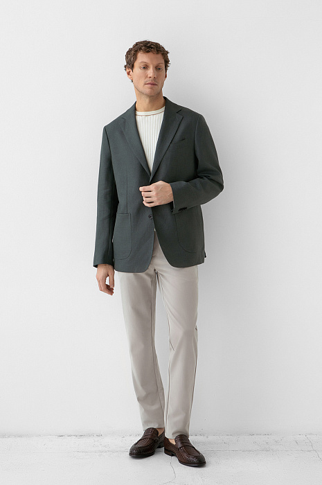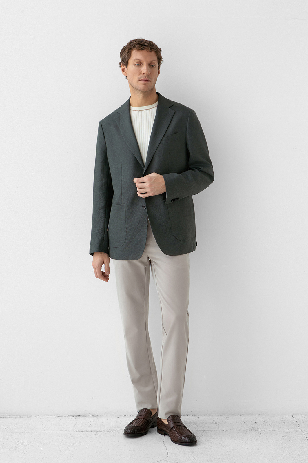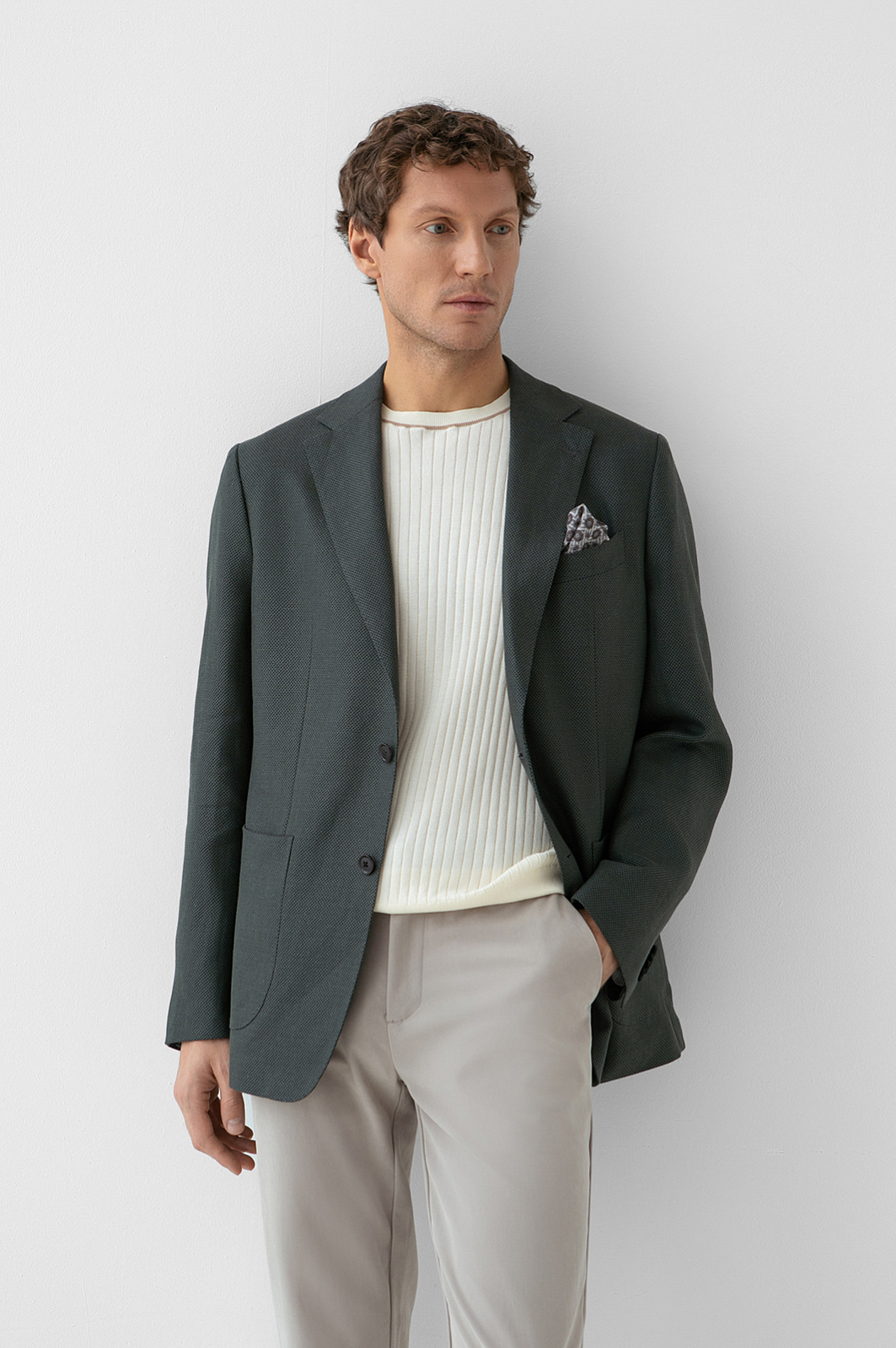 Пиджак KANZLER изо льна и шерсти мериноса глубокого синего цвета — выверенный баланс свободы и элегантности. Как верный спутник, он может сопровождать с утра до вечера — в офисе, на прогулке и ужине в хорошем ресторане. Прямой умеренно свободный крой формирует расслабленный непринуждённый силуэт. Накладные нижние карманы придают модели современный характер, сохраняя аккуратность и собранность образа. Роскошный натуральный материал изо льна и шерсти отличается выразительной, тактильно приятной текстурой. Лён дарит ощущение свежести, а мягкие упругие волокна мериносовой шерсти сохраняют естественное тепло и поддерживают форму ткани. Небольшая добавка эластана придаёт полотну пластичность.