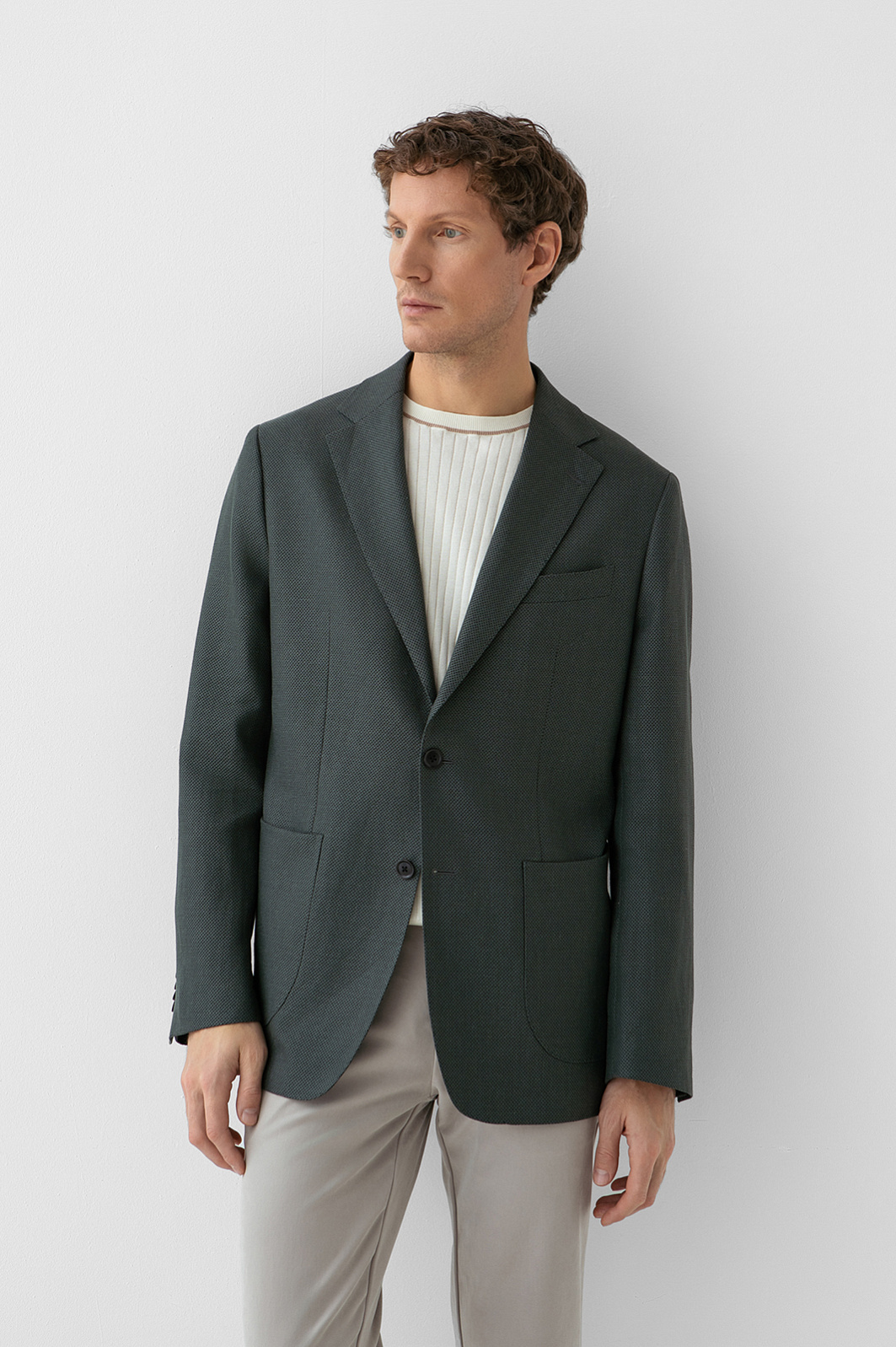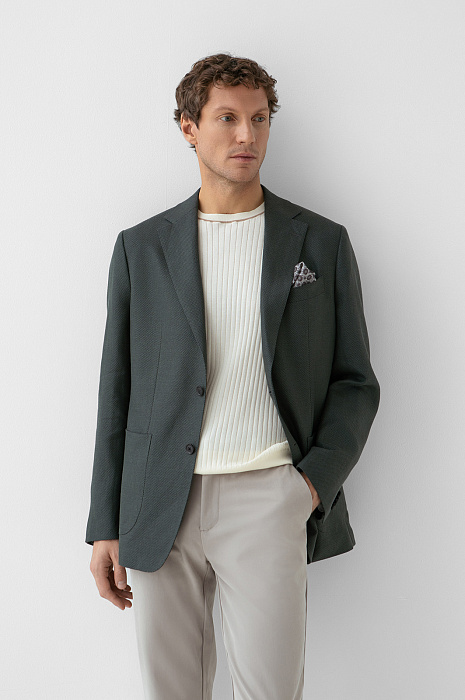 Пиджак изо льна и шерсти, цвет синий, цена 24 990 руб., код 271034 - купить в Краснодаре в интернет-магазине KANZLER