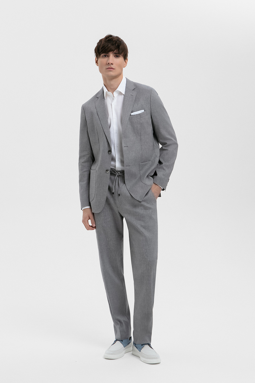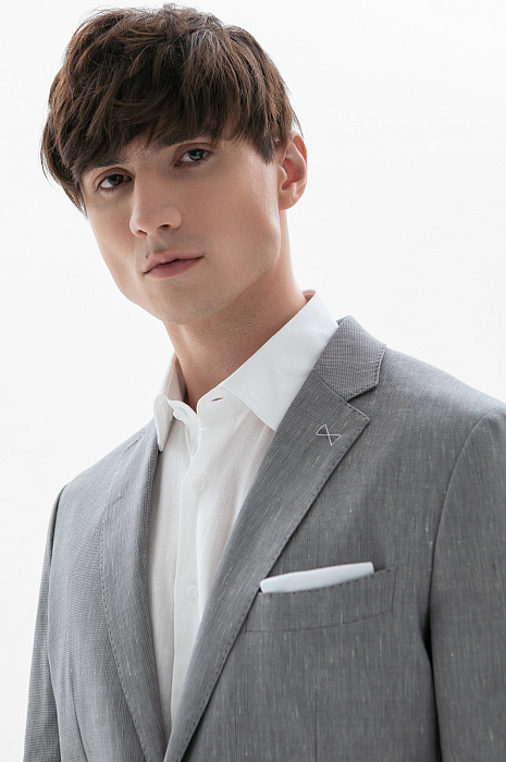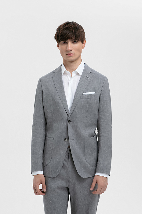 Пиджак из шерсти, льна и шелка, цвет серый, цена 34 990 руб., код 271037 - купить в Краснодаре в интернет-магазине KANZLER