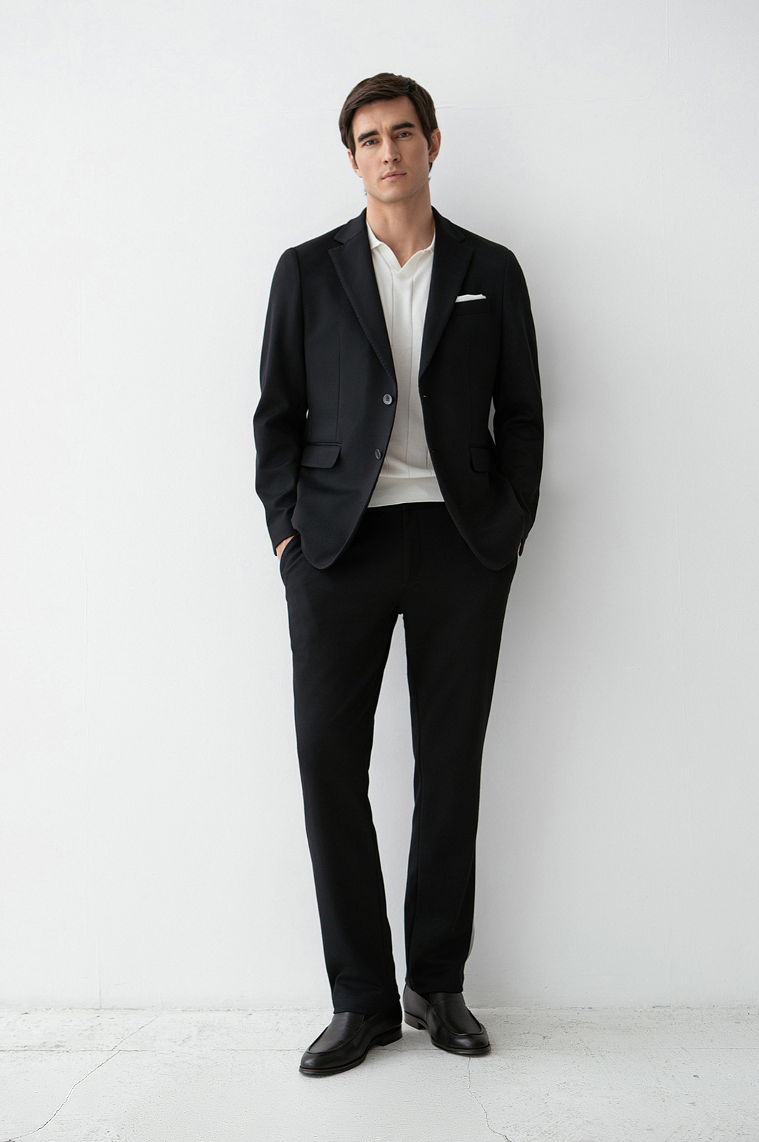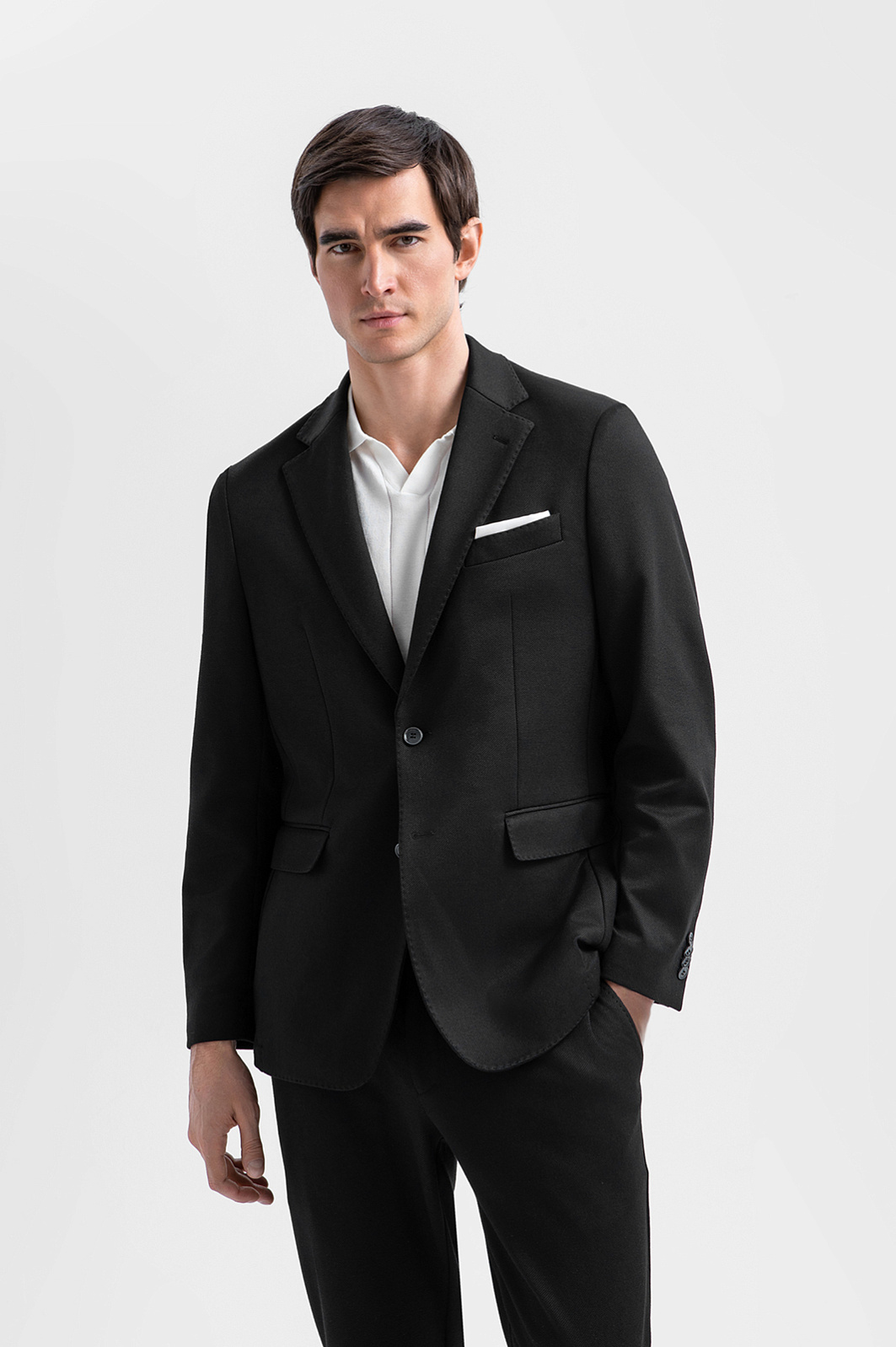 Чёрный однобортный пиджак KANZLER из практичной ткани — универсальный элемент делового гардероба. Умеренно свободный силуэт подходит для любого типа телосложения. Детали выдержаны в классической традиции: нагрудный карман с листочкой, клапаны на нижних карманах, изящная портновская строчка по краю лацканов и две шлицы сзади. Отсутствие подкладки облегчает конструкцию и делает посадку более естественной. В составе смесовой ткани — натуральные и синтетические волокна. Хлопок и район обеспечивают воздухопроницаемость и мягкость. Полиэстер защищает от износа, а спандекс обеспечивает необходимую эластичность и адаптацию пиджака к индивидуальным особенностям фигуры.