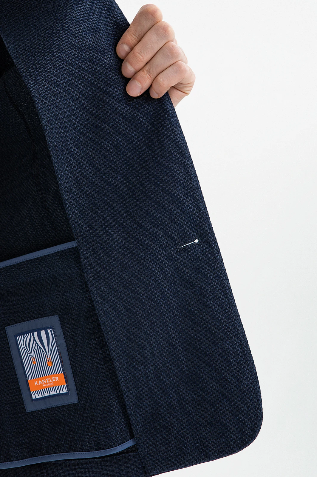 Роскошный синий пиджак KANZLER изо льна и хлопка — эволюция мужской классики, движущей силой которой стали инновационный дизайн и современные технологии пошива. Облегчённый свободный крой делает силуэт естественным. Узкие расправленные воротник и лацканы придают современное звучание и цельность. Традиционные детали — пуговицы на рукавах и клапаны на карманах — подчёркивают преемственность. Модель сшита из фактурной смесовой ткани. В составе — натуральные гипоаллергенные волокна. Прочный лён укрепляет полотно и придаёт структурность. Мягкий воздухопроницаемый хлопок поддерживает оптимальный микроклимат.