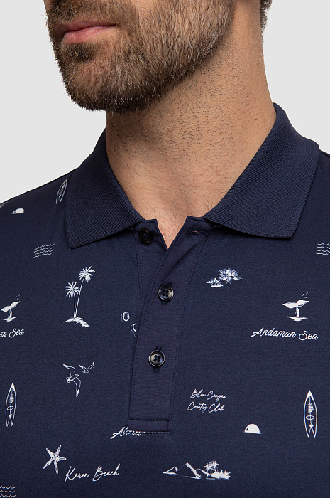 Синяя футболка-поло из мерсеризованного хлопка Slim fit в Краснодаре