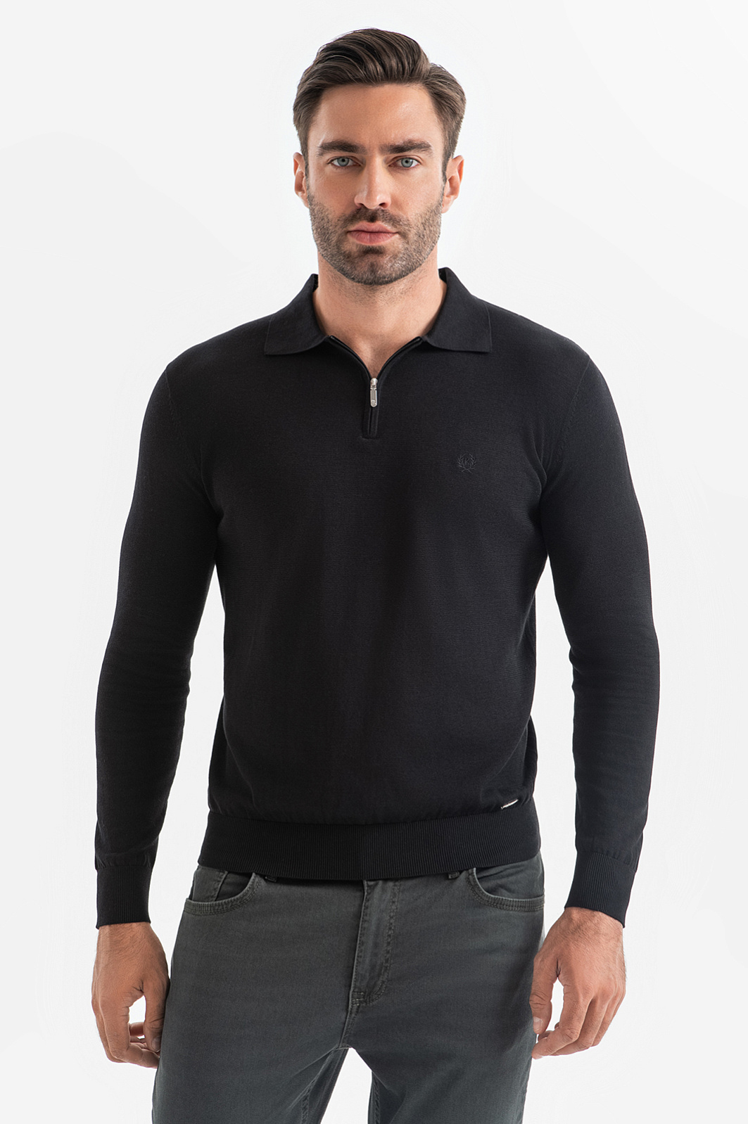 Черное поло из хлопка, шелка и льна в Краснодаре