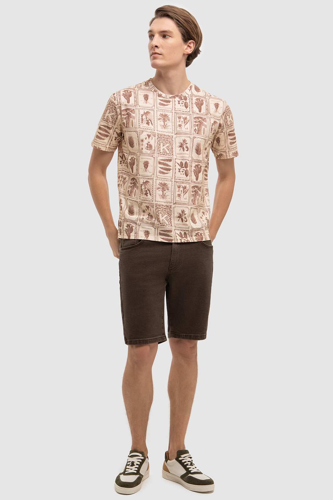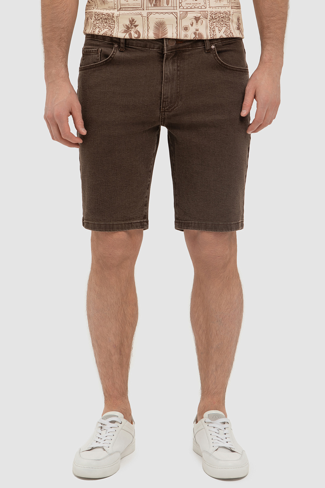 В новом сезоне коричневый значится в списке главных цветов мужского гардероба. При этом самое модное воплощение коричневый цвет получил в виде вещей из денима. Поэтому в коллекции KANZLER появились стильные джинсовые бермуды чуть выше колен. Для пошива модели использовали мягкий хлопок, не препятствующий циркуляции воздуха и стрейч волокна, благодаря которым изделие прямого кроя прекрасно садится по фигуре. Бермуды отлично сочетаются практически с любым верхом: рубашкой с длинным или коротким рукавом, футболкой или поло с отложным воротником. Комбинируйте верх таким образом, чтобы он сочетался с оттенком шорт. Например, стильно выглядит комплект с футболкой с принтом песочного оттенка. В качестве декора дизайнеры добавили брендированный патч из натуральной кожи в тон изделия. Параметры модели: рост 191, 97-77-99 Размер на модели: 34