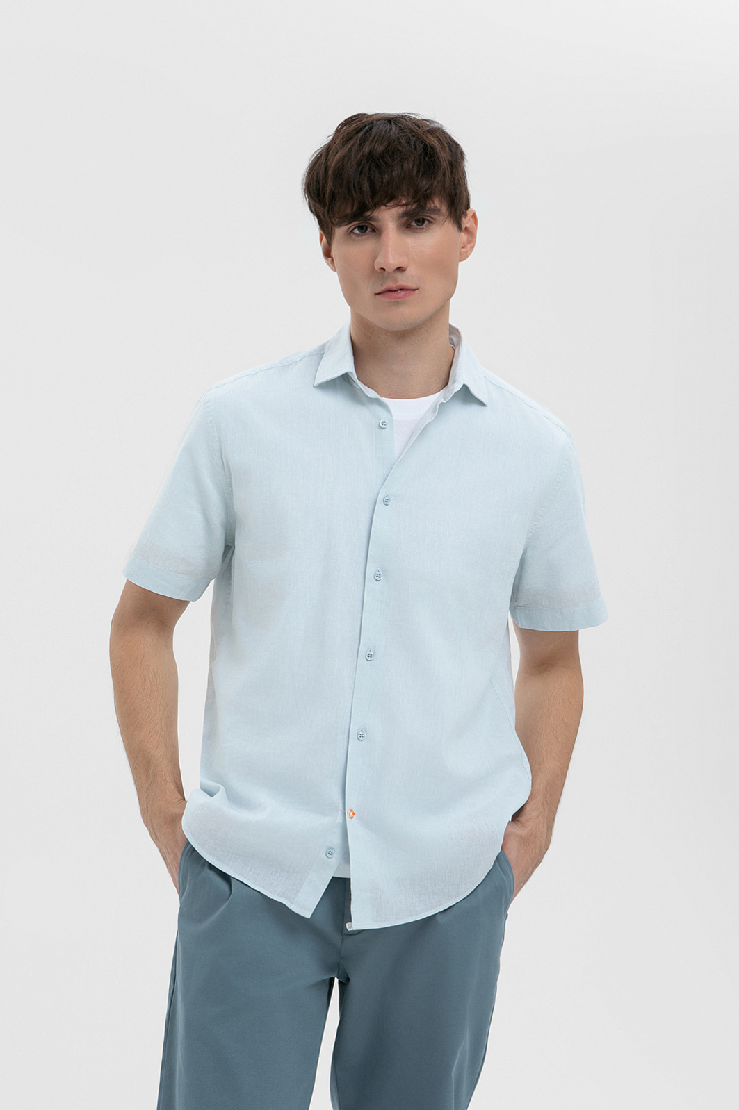 Сорочка с коротким рукавом изо льна и хлопка