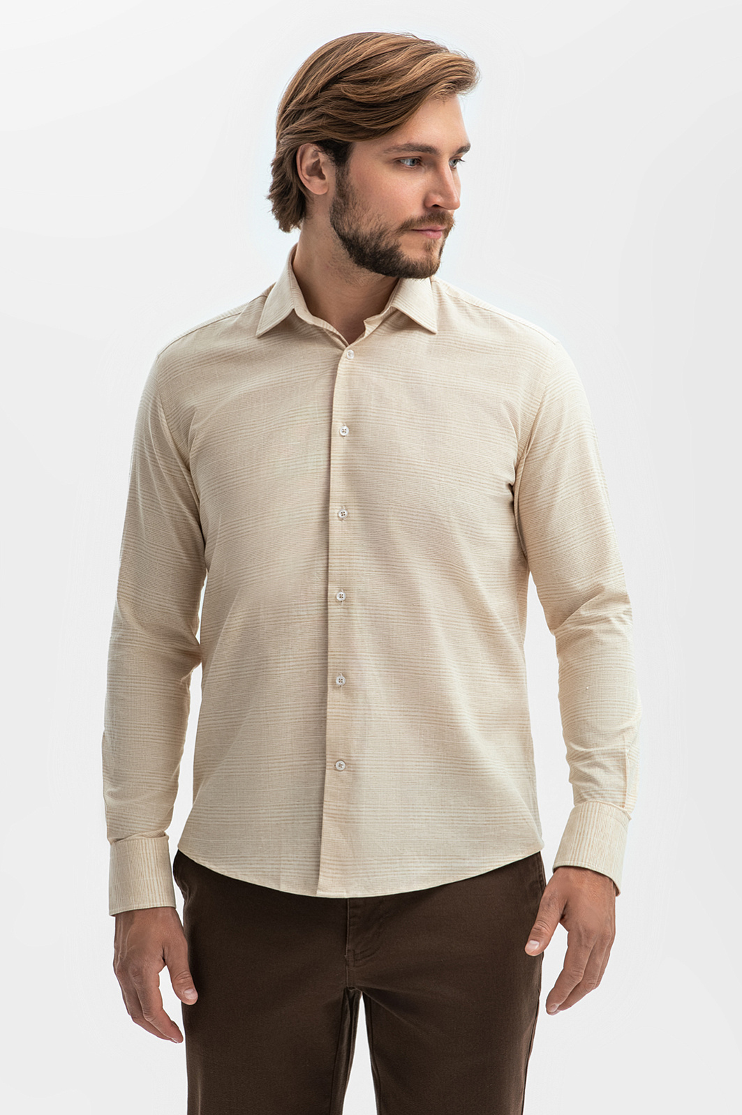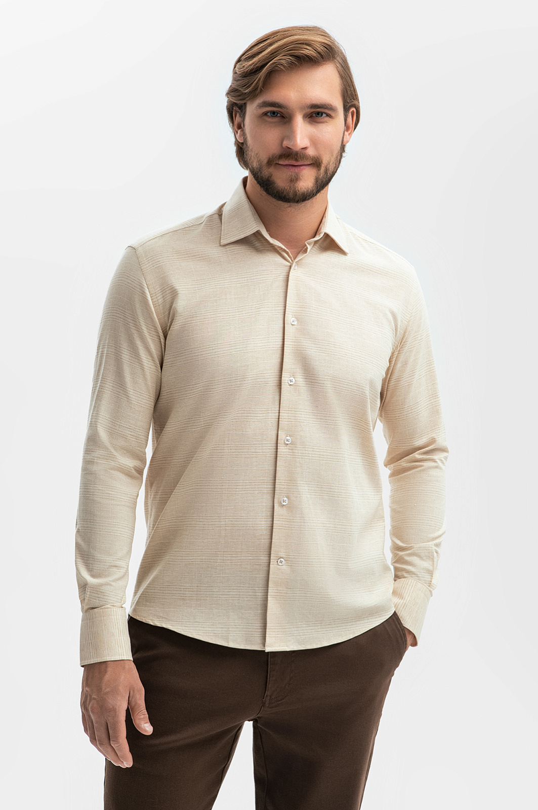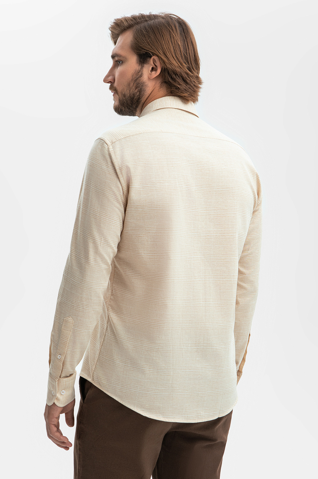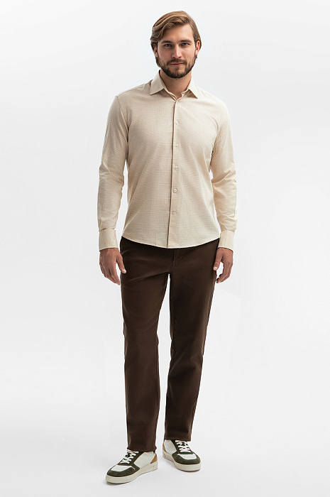 Комфортная рубашка KANZLER изо льна и хлопка с добавлением эластана — воплощение идеального баланса между стилем и функциональностью. Натуральные хлопок и лен дарят ощущение легкости, прохлады и свободы, а небольшой процент эластана обеспечивает мягкую эластичность и позволяет рубашке идеально садиться по фигуре, не сковывая движения. Рубашка выполнена в нежном пастельном оттенке сливочного масла, который придаёт образу легкость и летнюю свежесть. Современный, расслабленный прямой силуэт идеален для повседневной носки, путешествий и летнего отпуска. Модель на пуговицах, с элегантной отделкой легко сочетается с любым гардеробом, добавляя нотки изысканного итальянского стиля в ваш повседневный аутфит. Чтобы завершить образ, дополните её коричневыми брюками — этот ансамбль подчеркнёт красоту изделия. Параметры модели: рост 187, 100-81-97 Размер на модели: 40