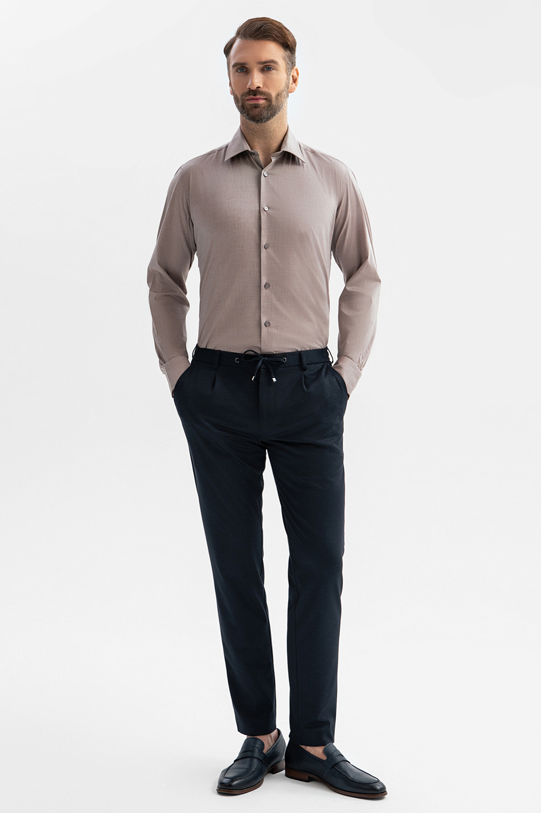 Бежевая сорочка из хлопка и лиоцелла