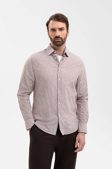 Сорочка из хлопка и льна, цвет коричневый, цена 8 990 руб., код 270877 - купить в Краснодаре в интернет-магазине KANZLER